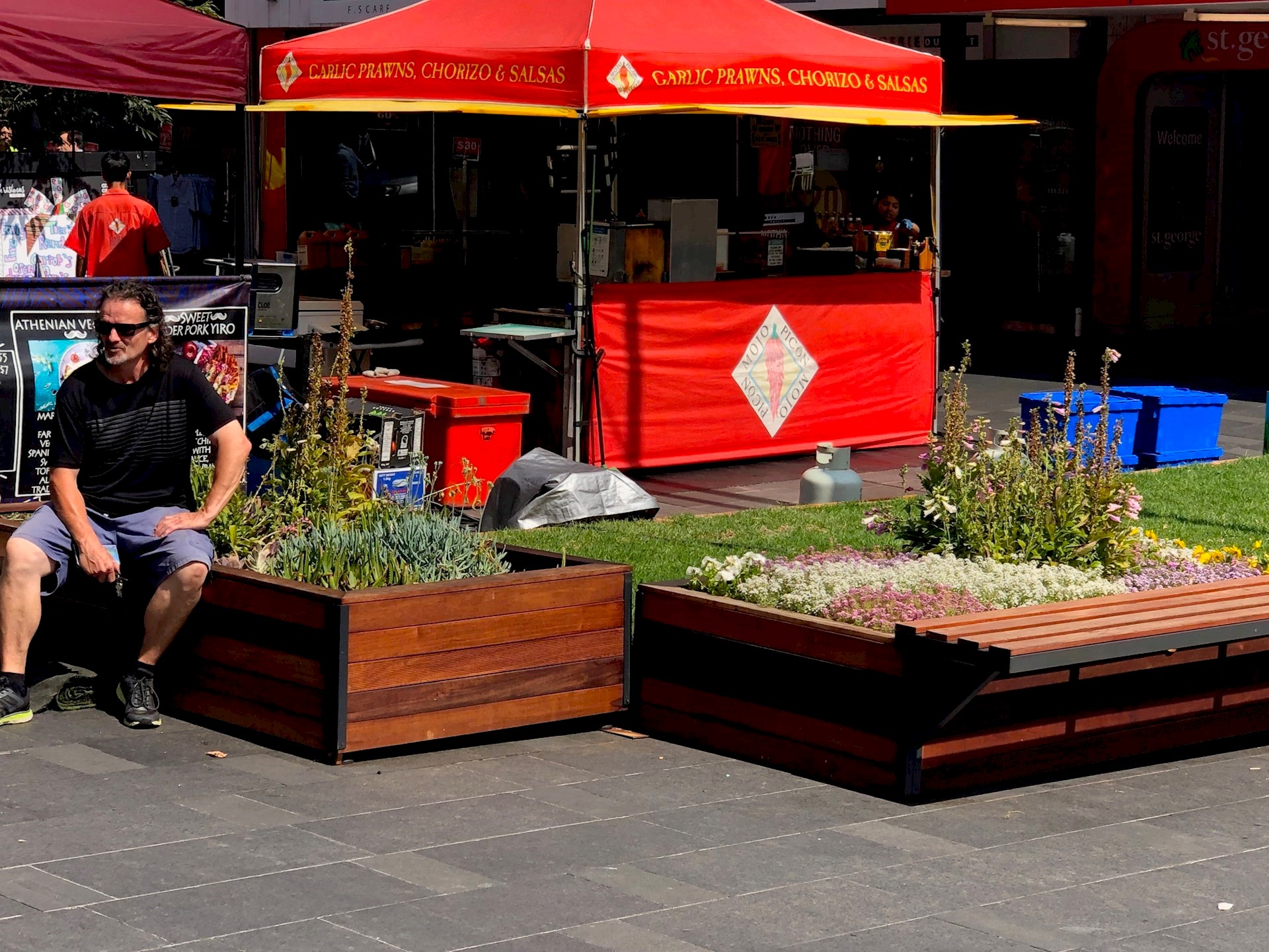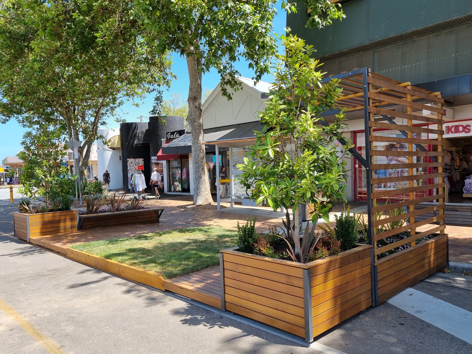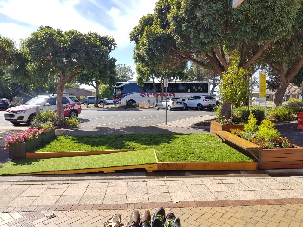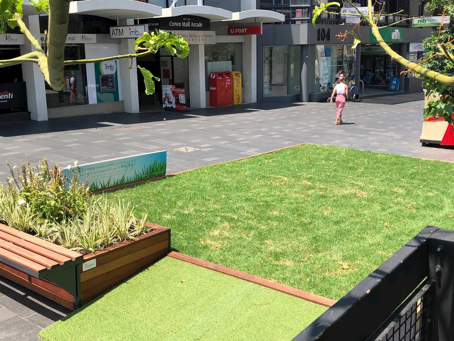 This project brought living colour and natural cooling via installation of 3 Pop-up Parks along Crown Street Mall.