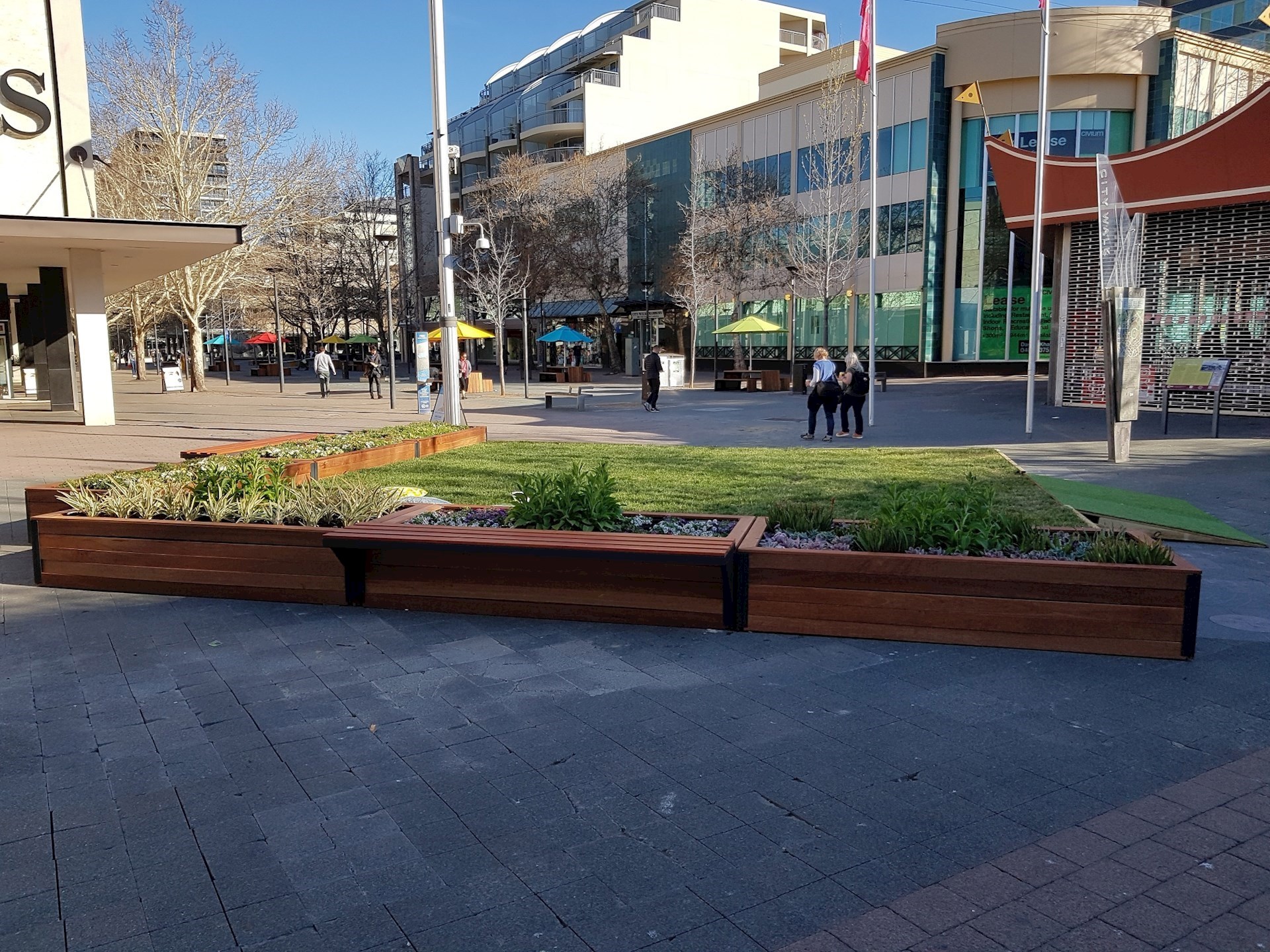 The combination of Plantabox flower beds and the Plantabox Turf mature lawn gave an instant green boost plas an activation zone to the City CBD during their spring.