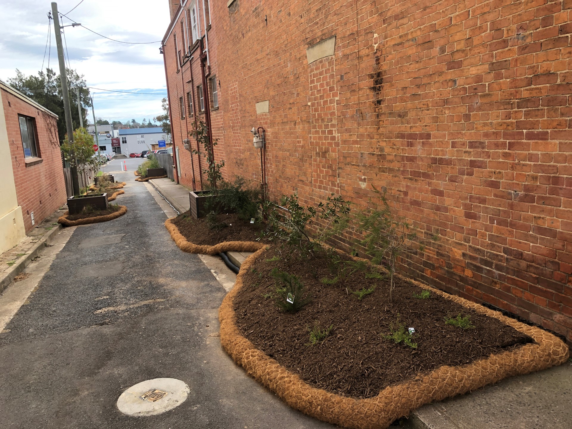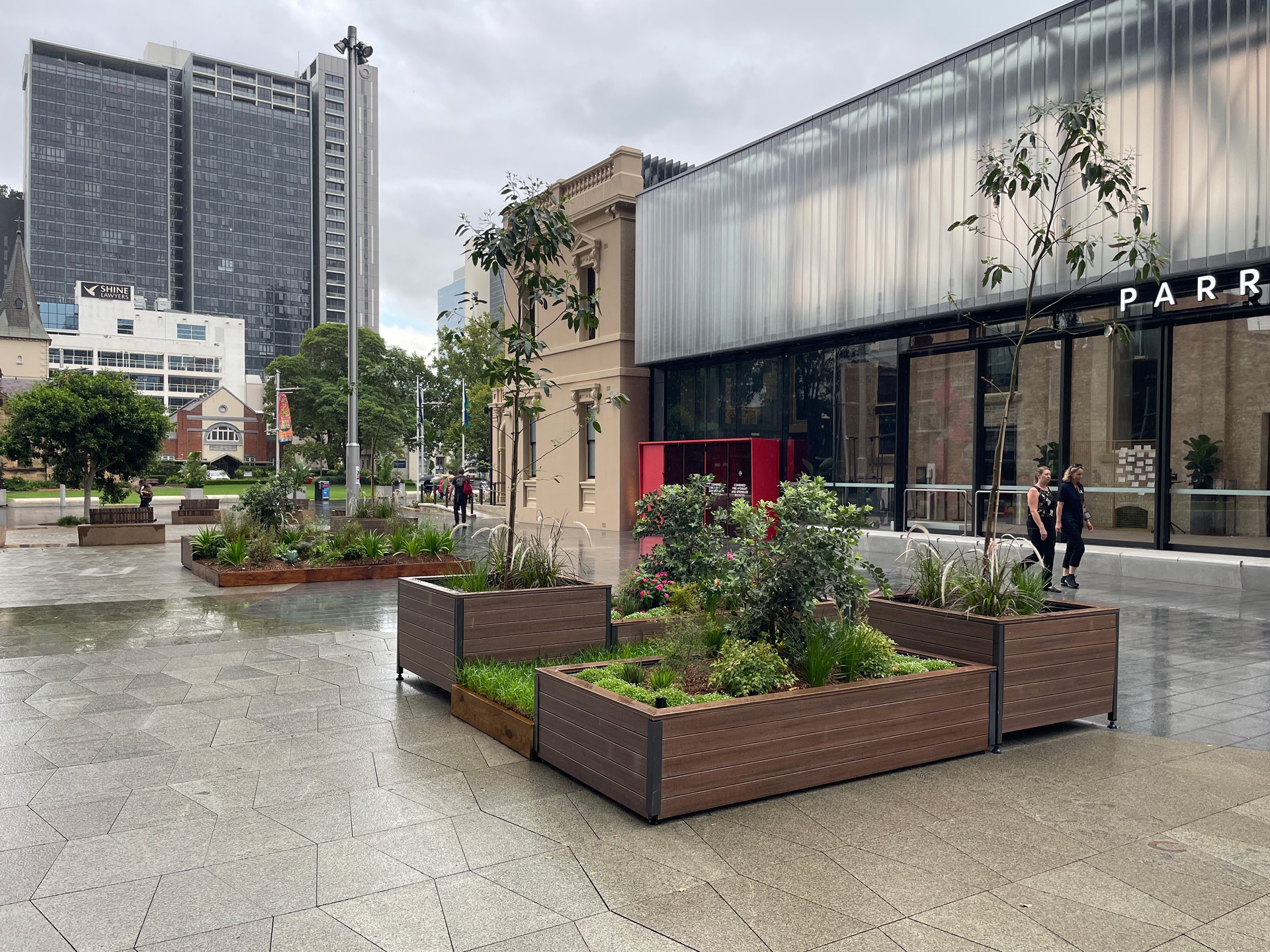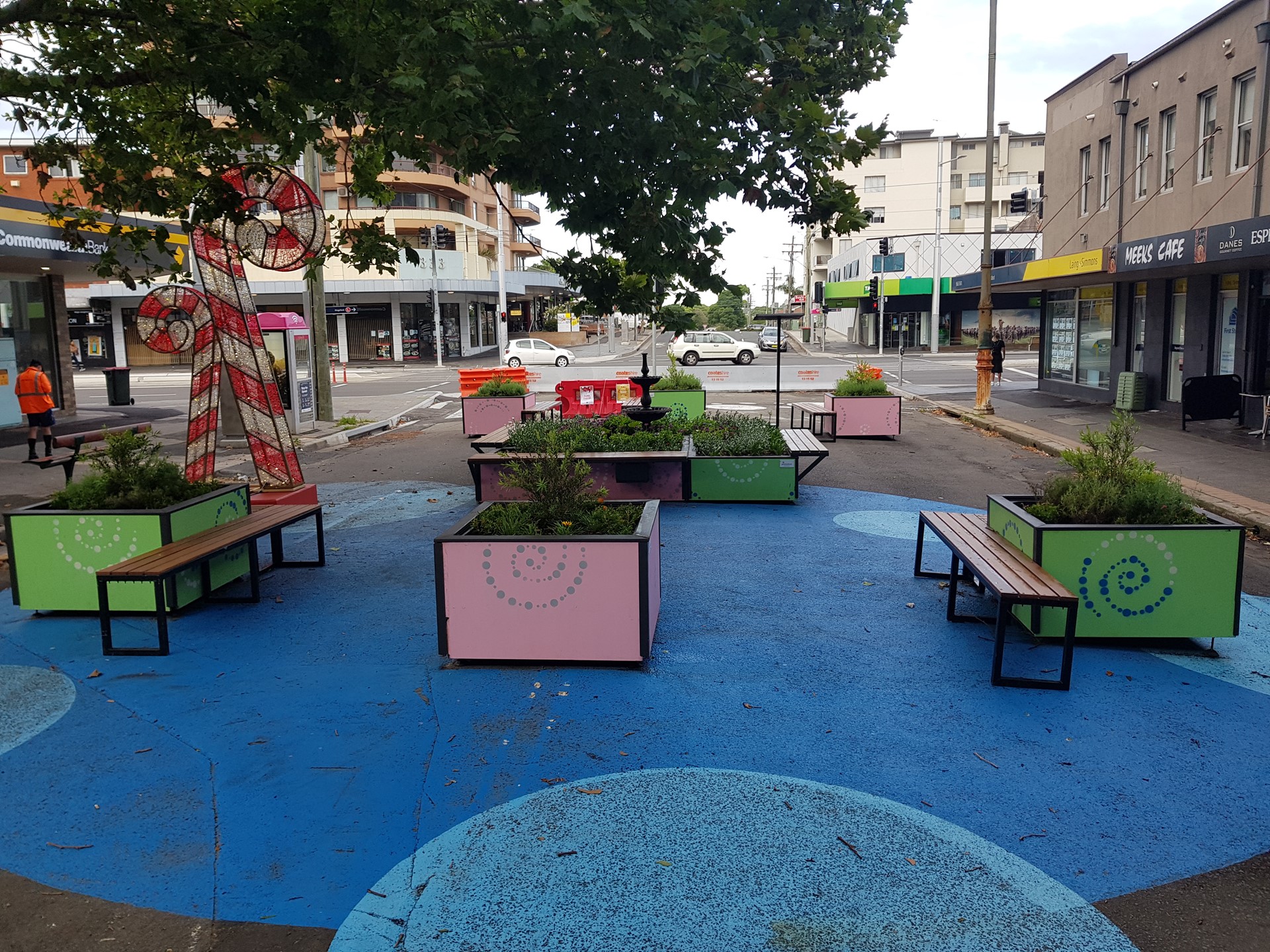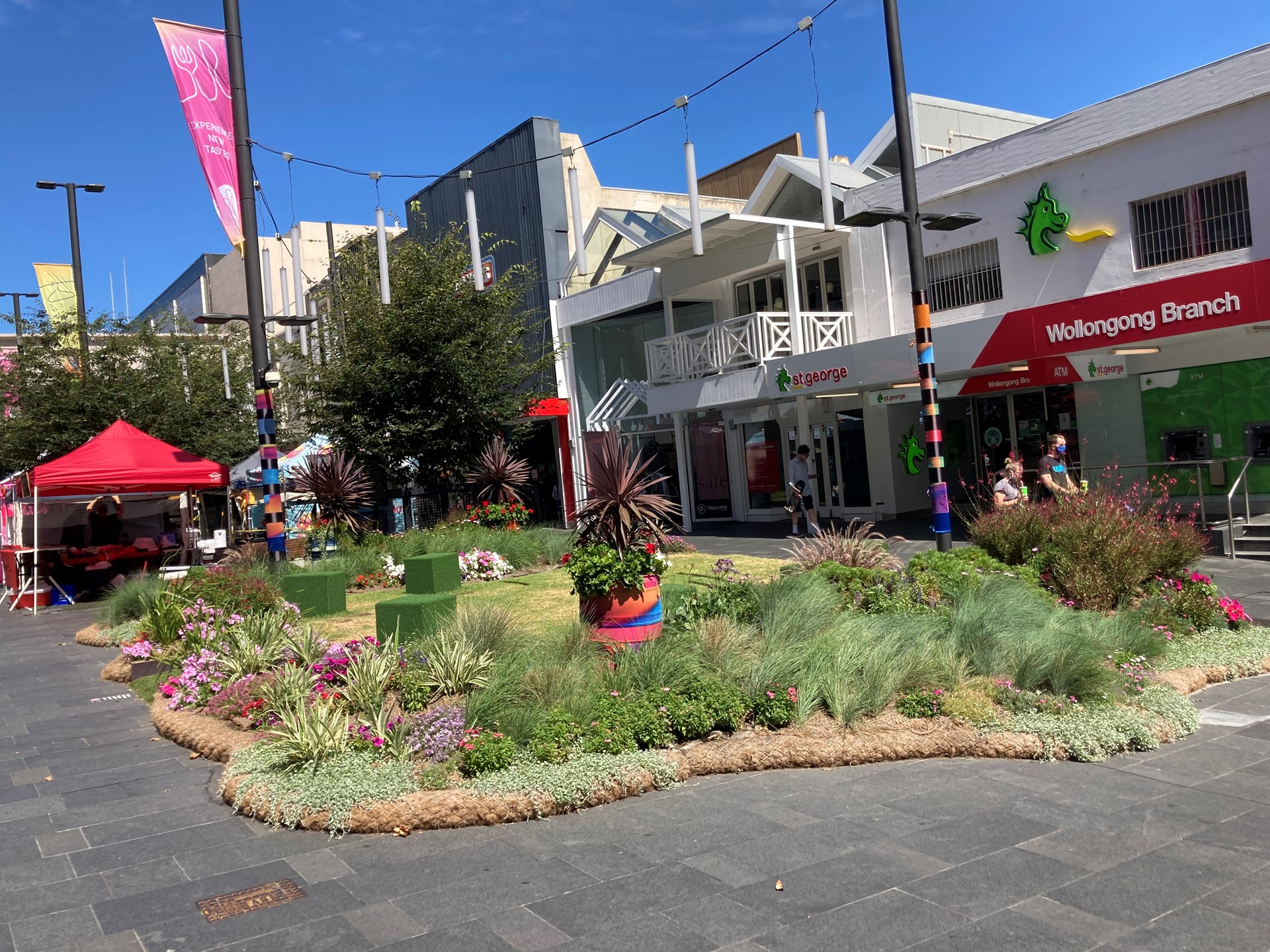 Campbelltown council was looking at ways to provide greenery and more seating to this street. We worked with their team to design the space and build gardens directly onto the road using our process in Wollongong.