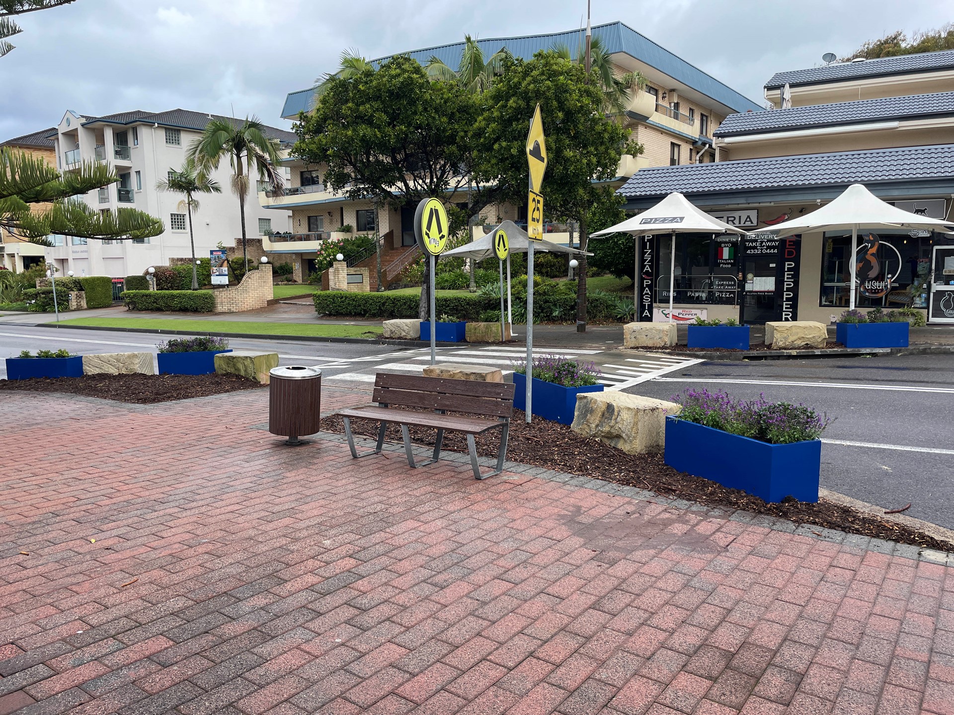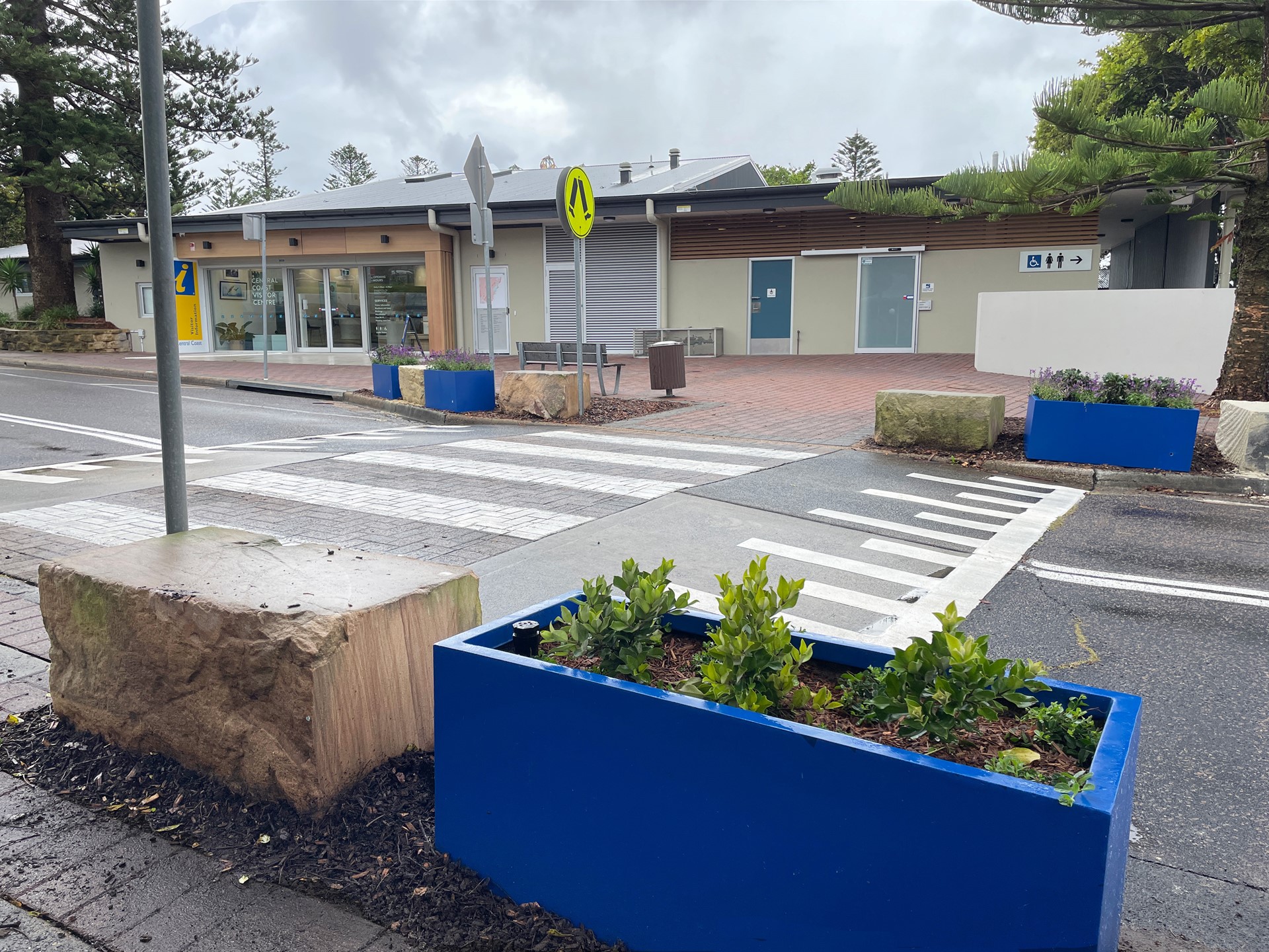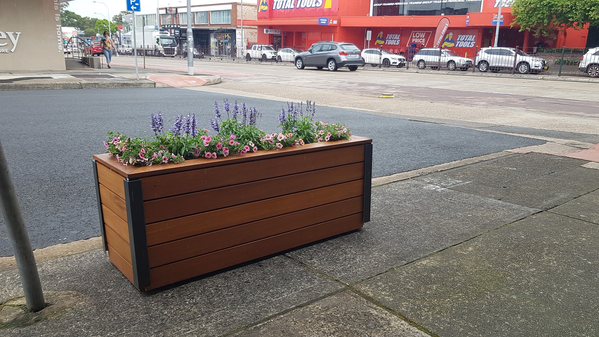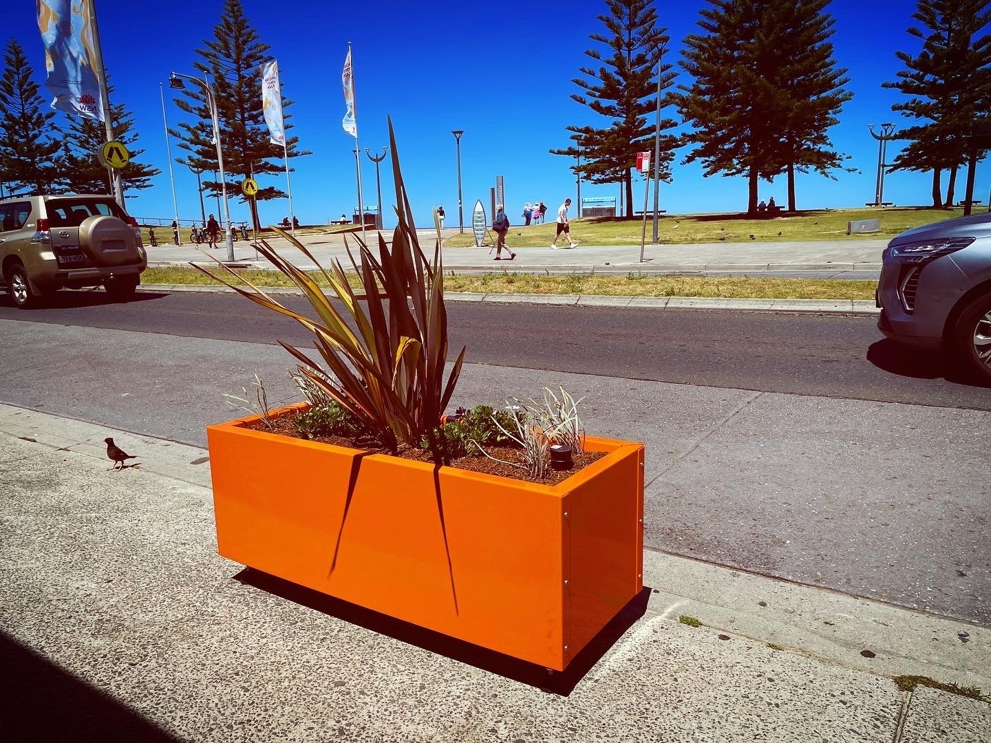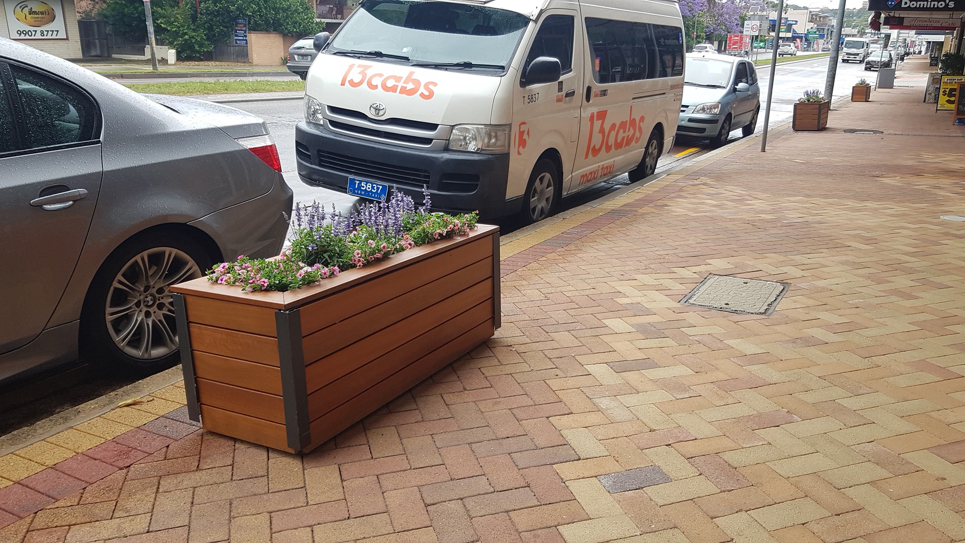 Pittwater Road is the main arterial road for the northern beaches. Around Dee Why there is no greenery along the footpaths and the whole area a greyscape. Street planters were requested so we installed Small Plantaboxes to help green this zone.