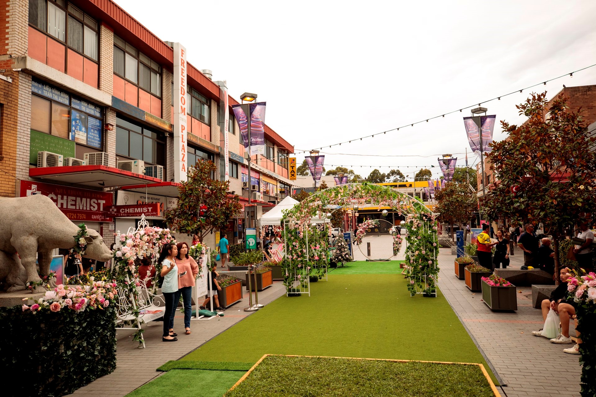 Fairfield council wanted to mark the 'return to normal' after covid lockdown by activating the main gateway into Cabramatta. Bringing Plantabox Turf into a space devoid of greenery provided the perfect instagram back drop.