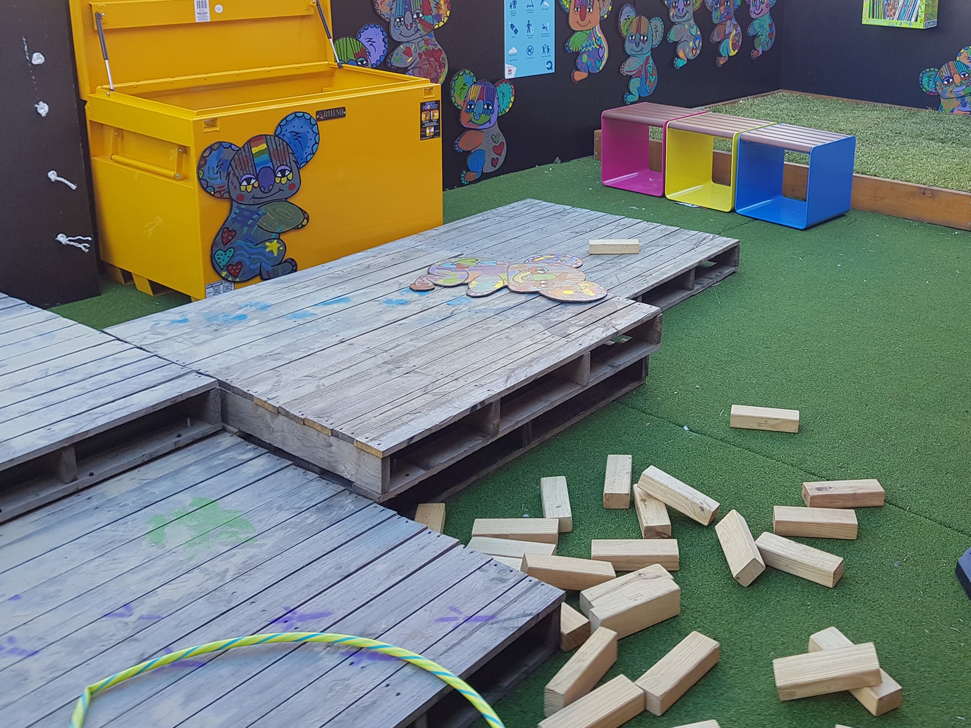 For Randwick council designed and built the road closure of McKeon St. A mix of composite decking, raised decking, staging and synthetic grass as a base. Large, street and tree planters intermixed with GRC planters, umbrellas, games and kids area.