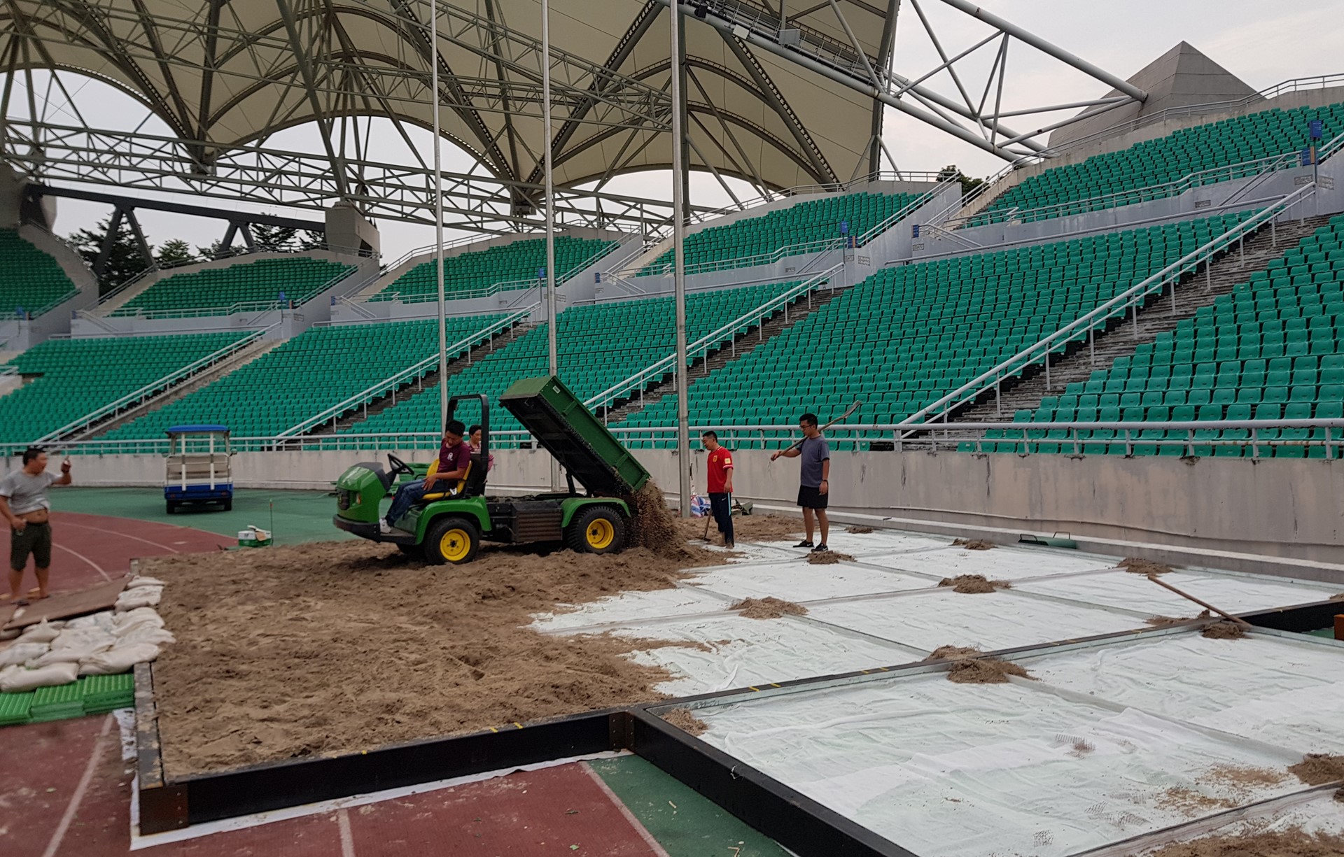 The plot has tested locally used sportsturf varieties on the surface and tested local operating procedures. The plot is performing well giving a sports surface suitable for international football.