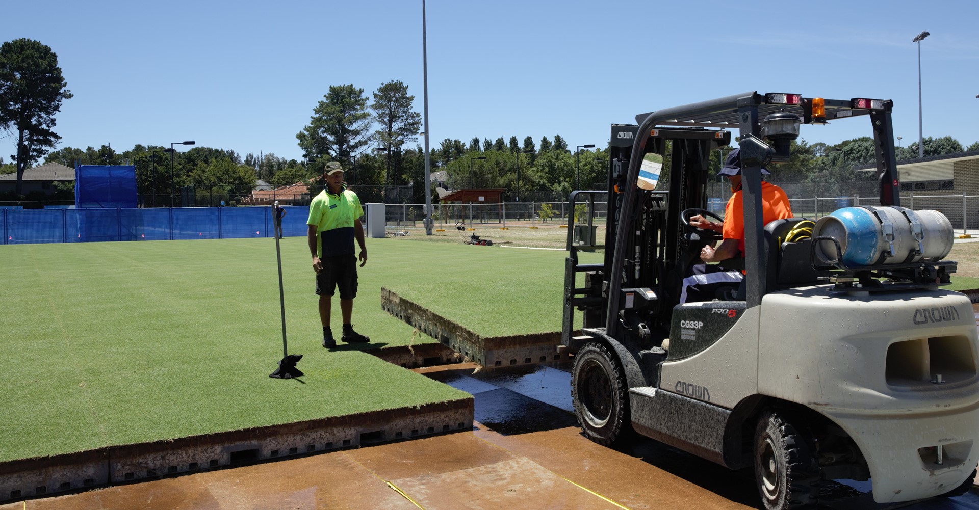 Our innovative Turf Trays provided the perfect solution, allowing the city to install a large-scale lawn directly over the existing pavers. The design cleverly integrates with the mall’s unique “crazy paving,” which represents the Murray River. We engineered modular paving that seamlessly passes through the lawn, maintaining this iconic river system's continuity.