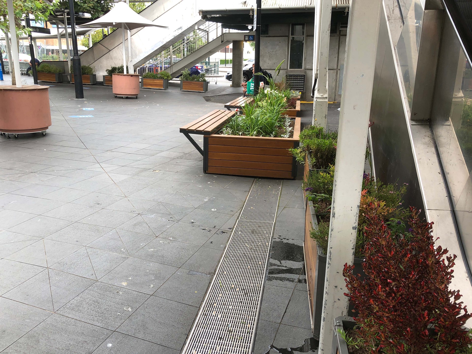 The area directly beside Blacktown train station was void of low greenery and lacking seating. The layout was not attractive to foot traffic.