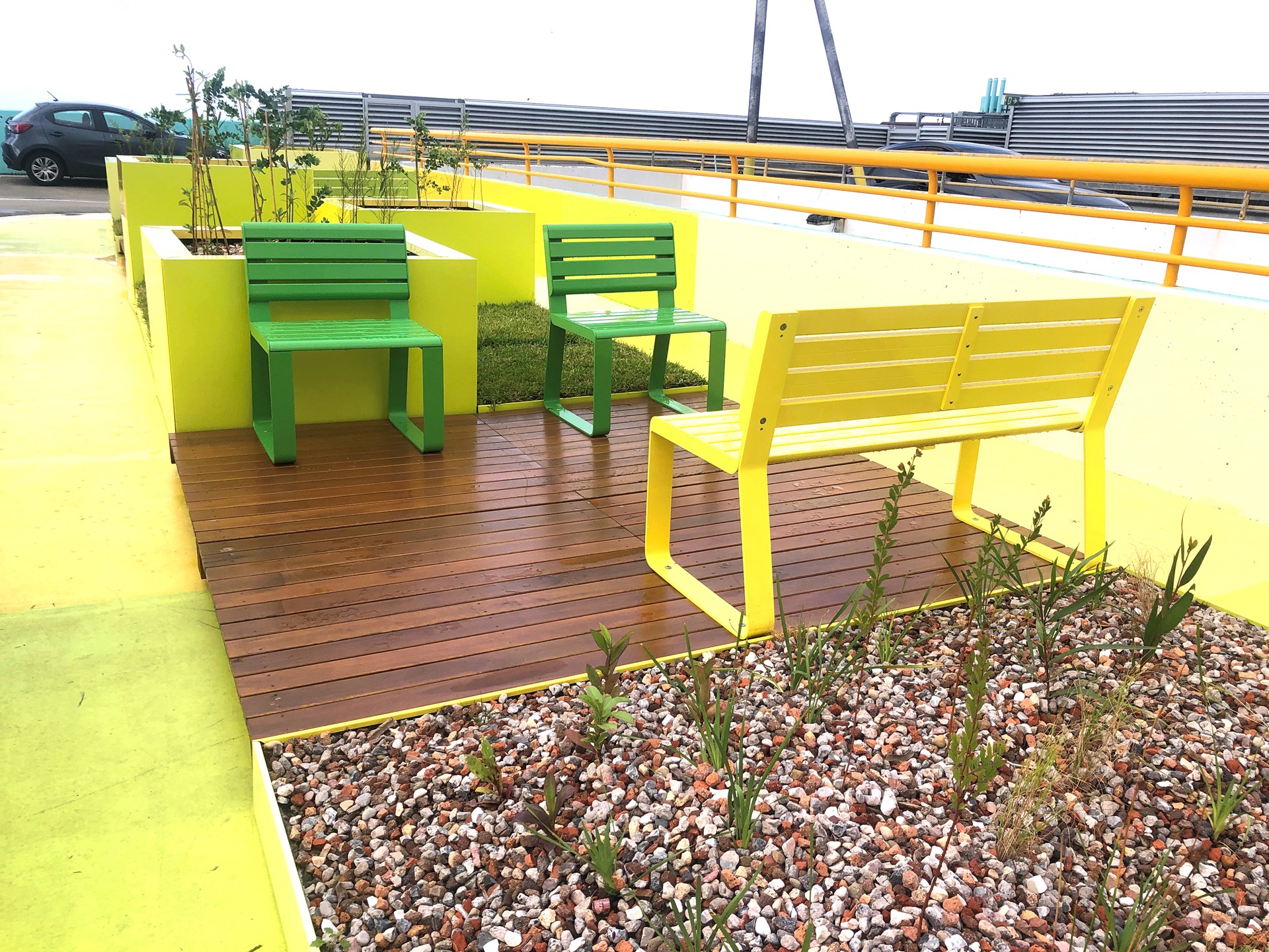 Swinburne Uni wanted to soften and add some more green infrastructure to their campus and they needed to be in line with their corporate colours and existing furniture. We delivered some decking sun beds as well as planters, desk and seating modules.