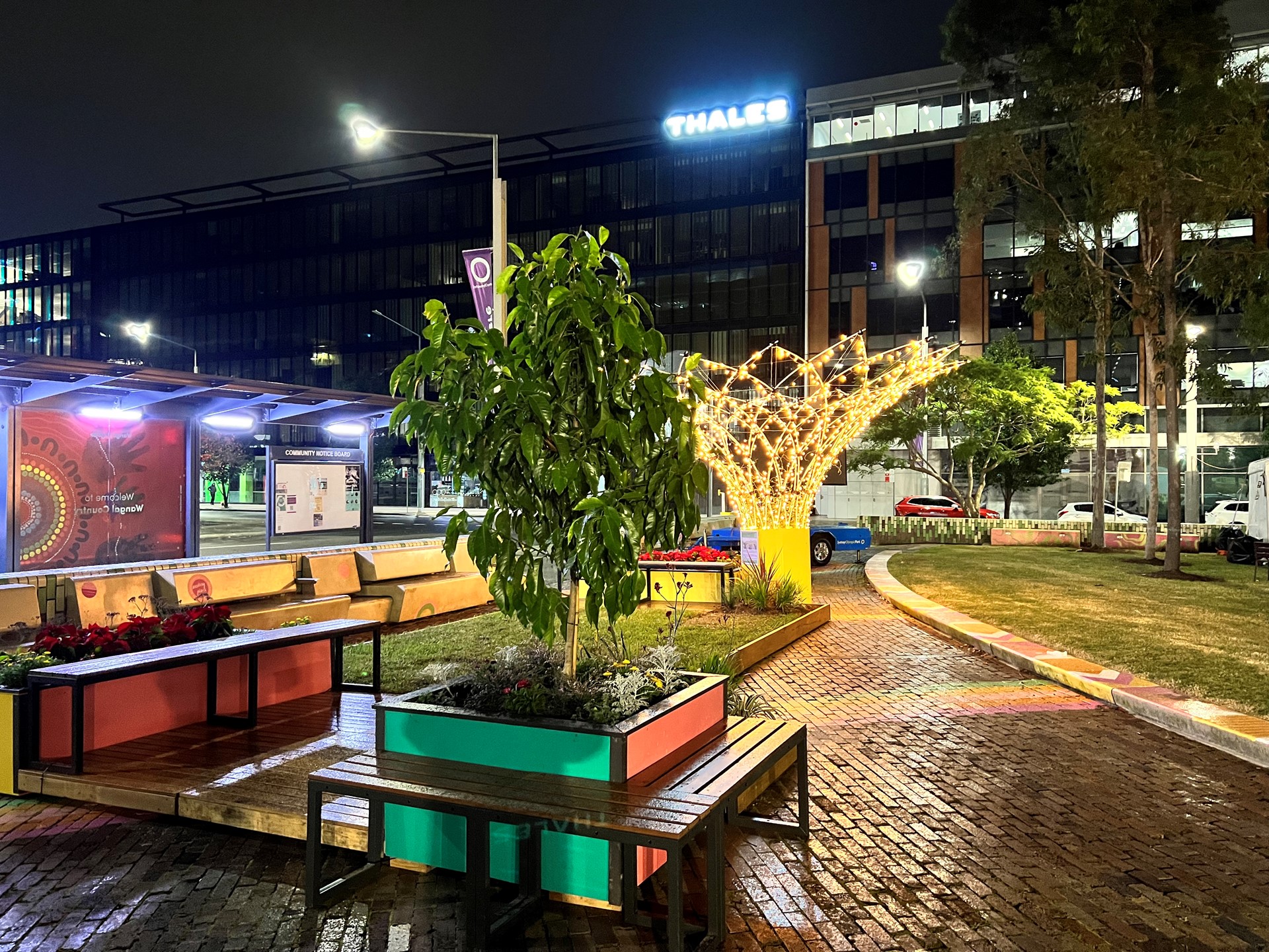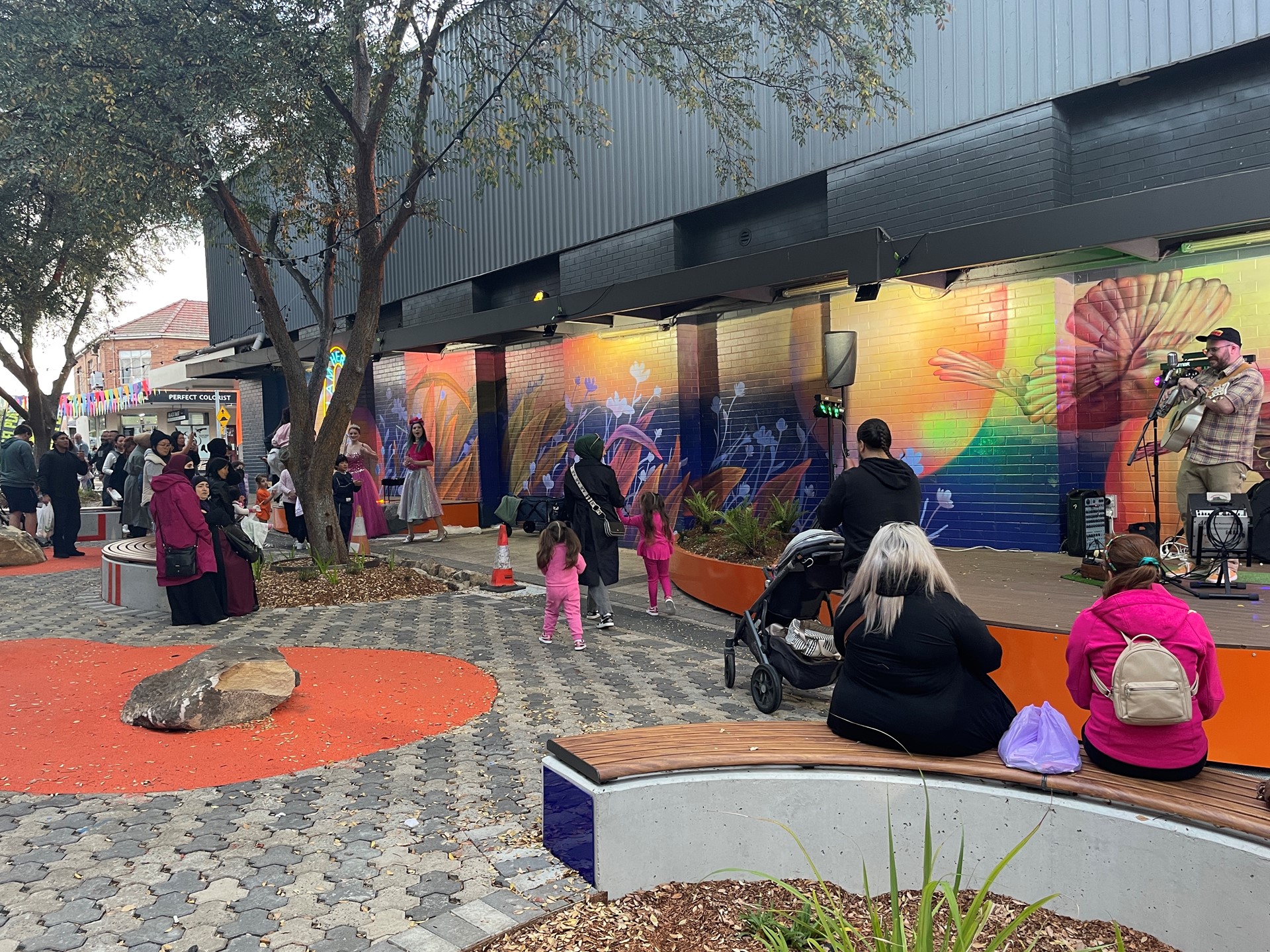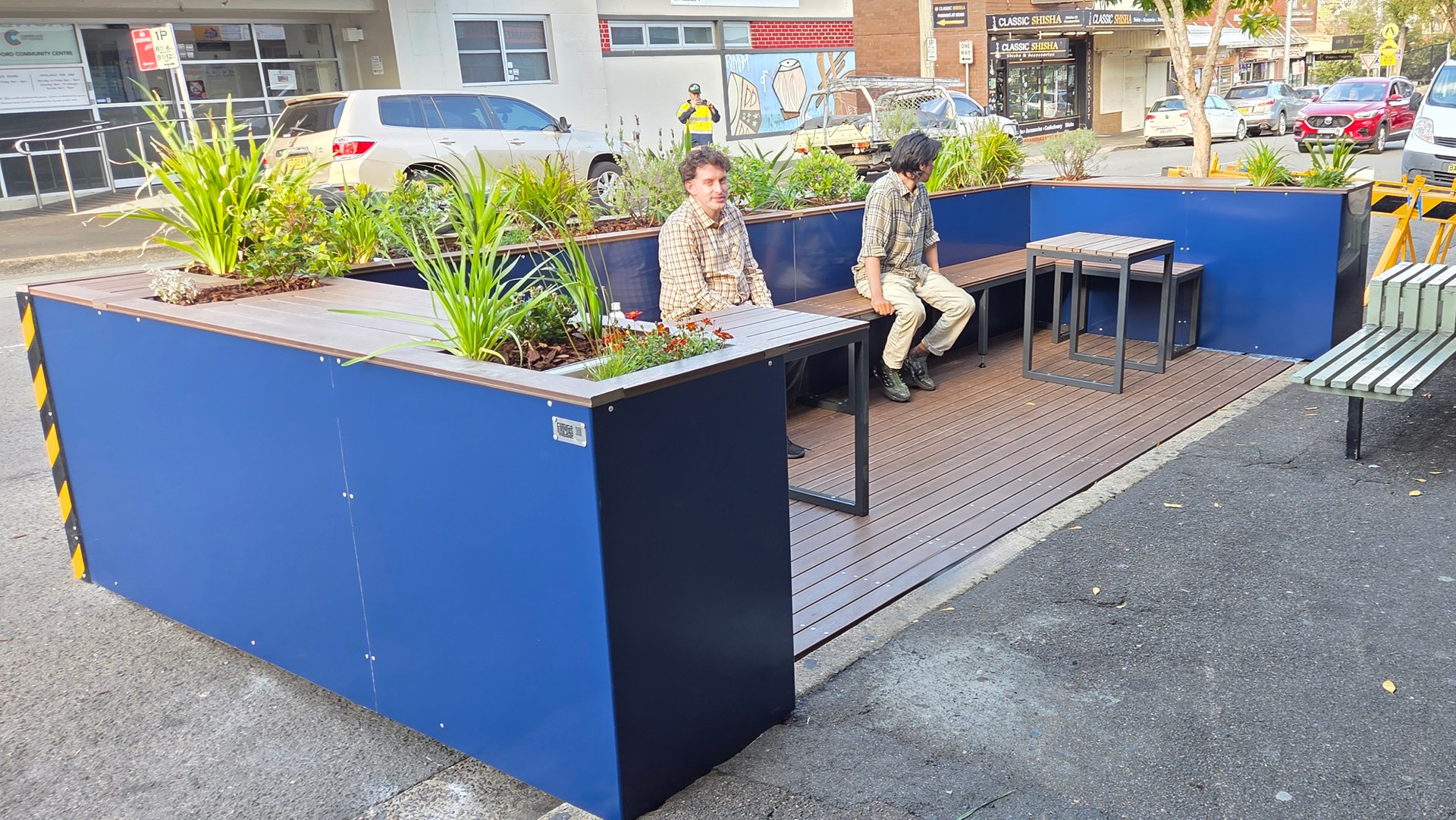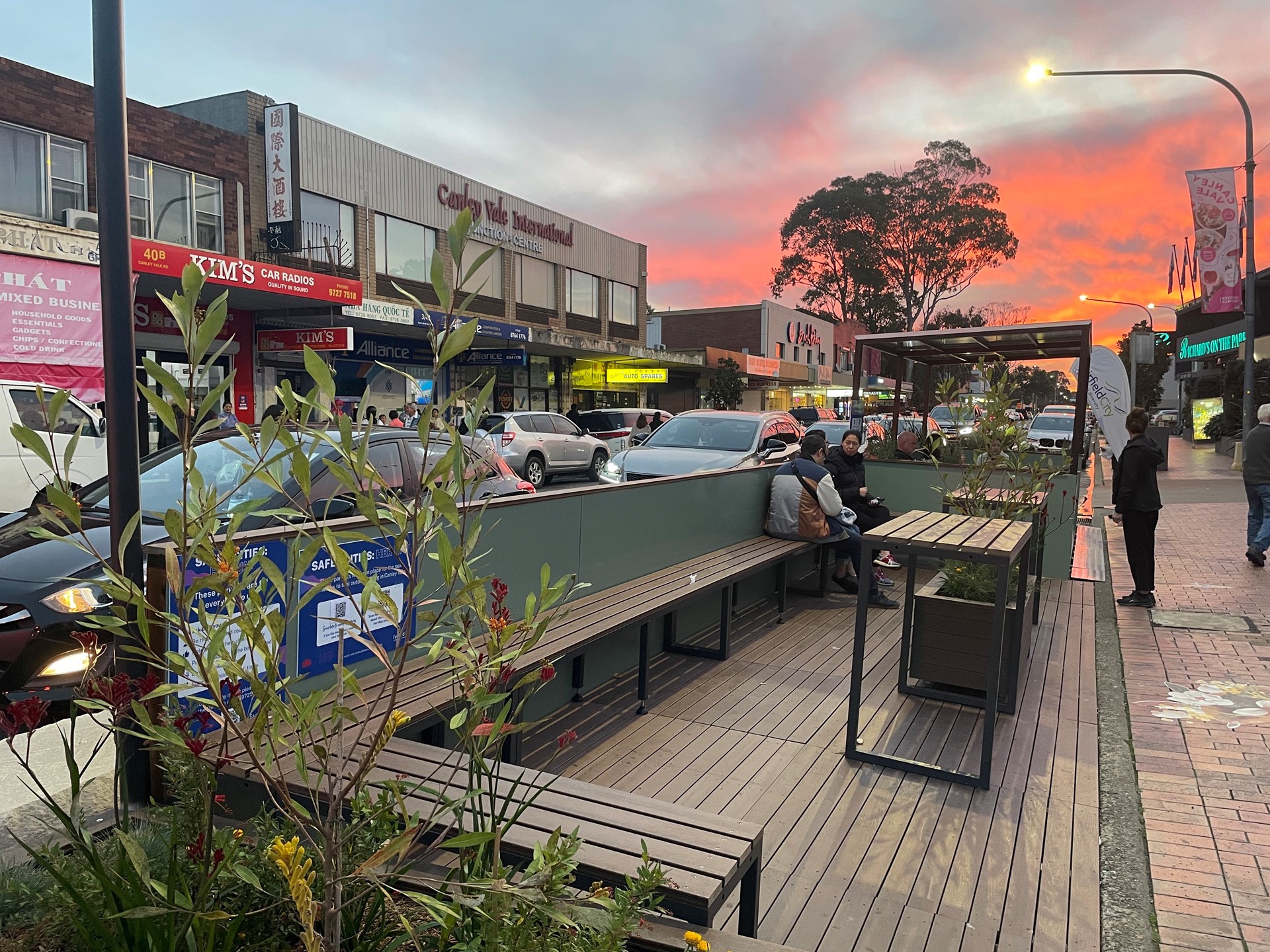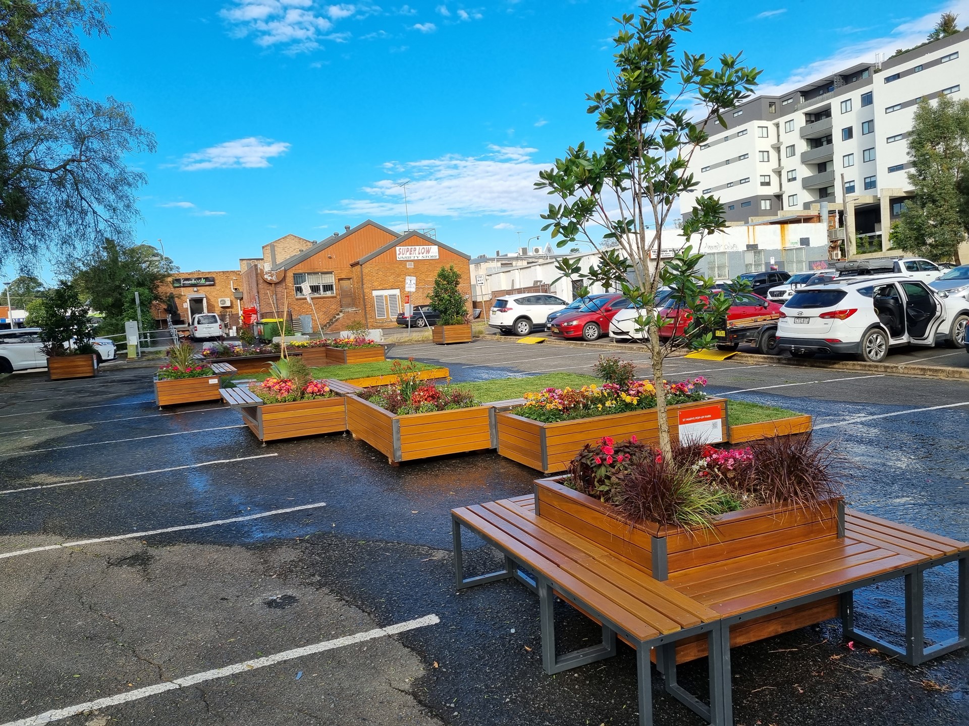 Penrith council provided multiple activations around Kingswood. Part of this was the provision of 3 car spots being turned into an area for the public to gather.