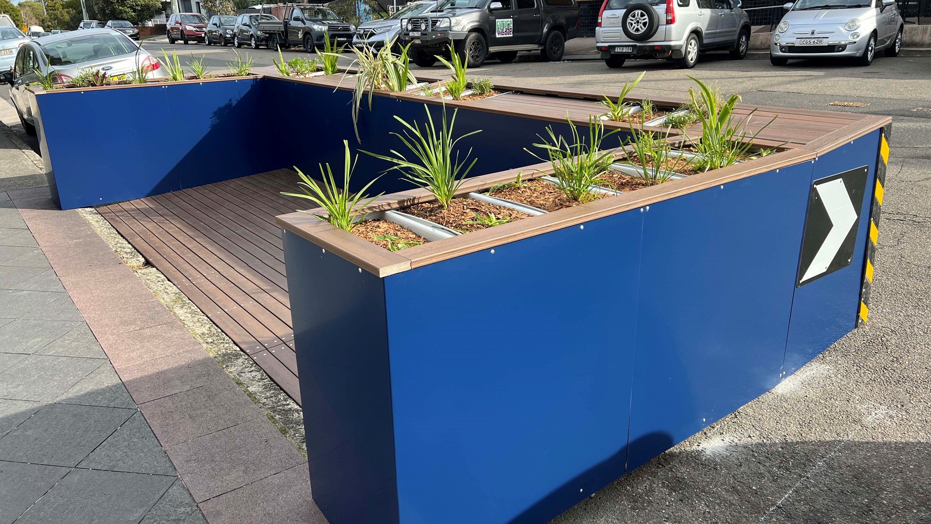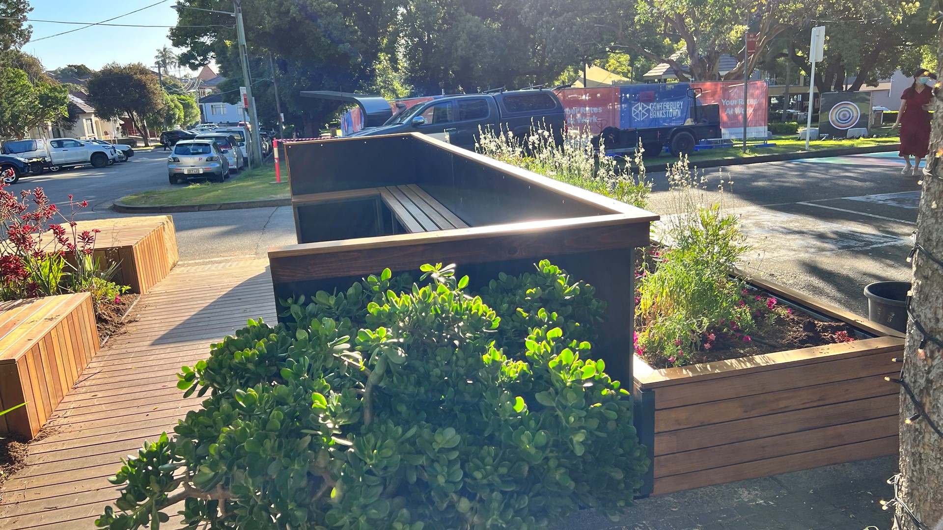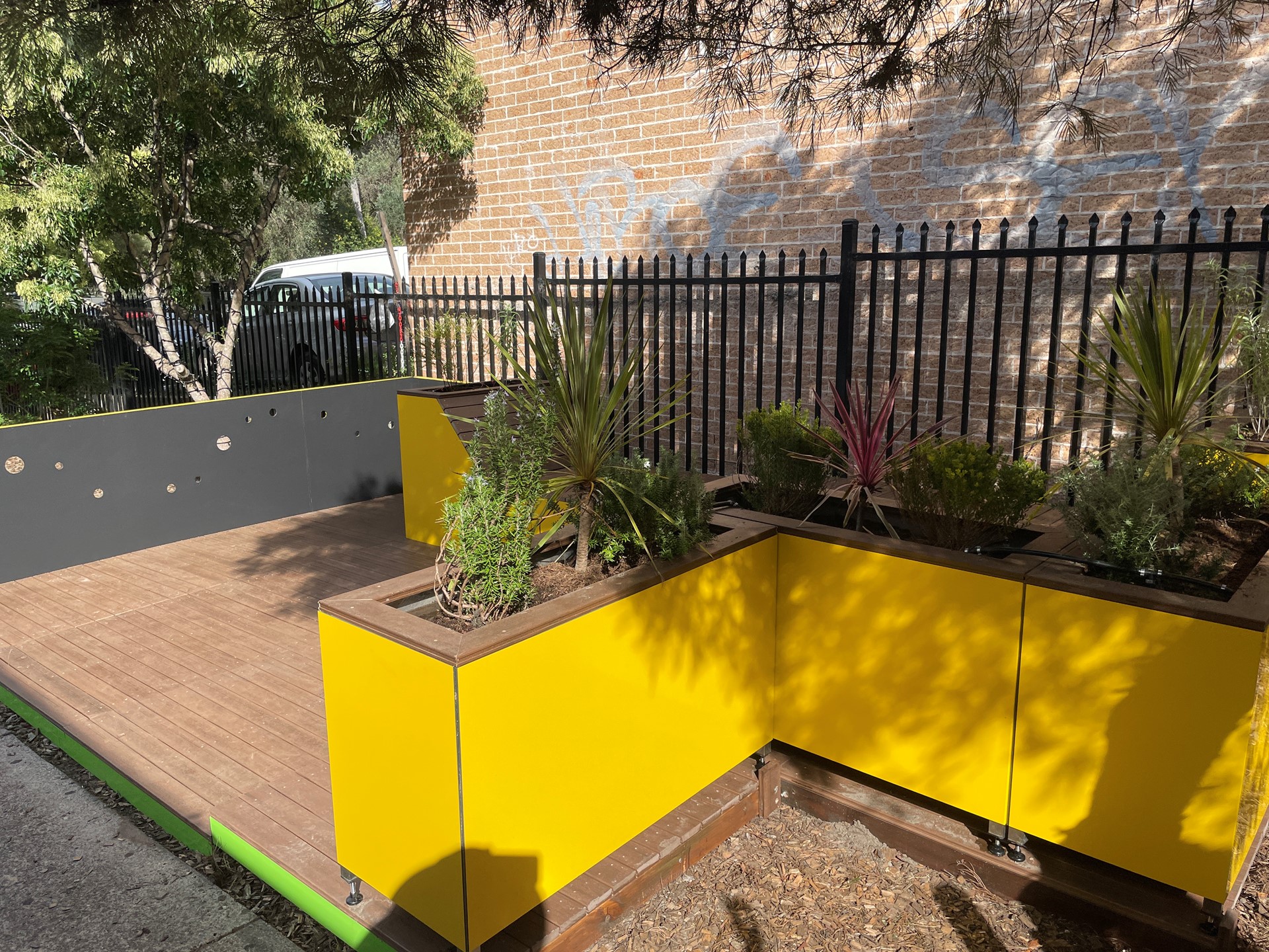 Randwick City Council commissioned a modular street parklet. This parklet is our first parklet using the Saddle planter system that sits directly on top of a concrete barrier. We have then added composite board facading and capping to the planters.