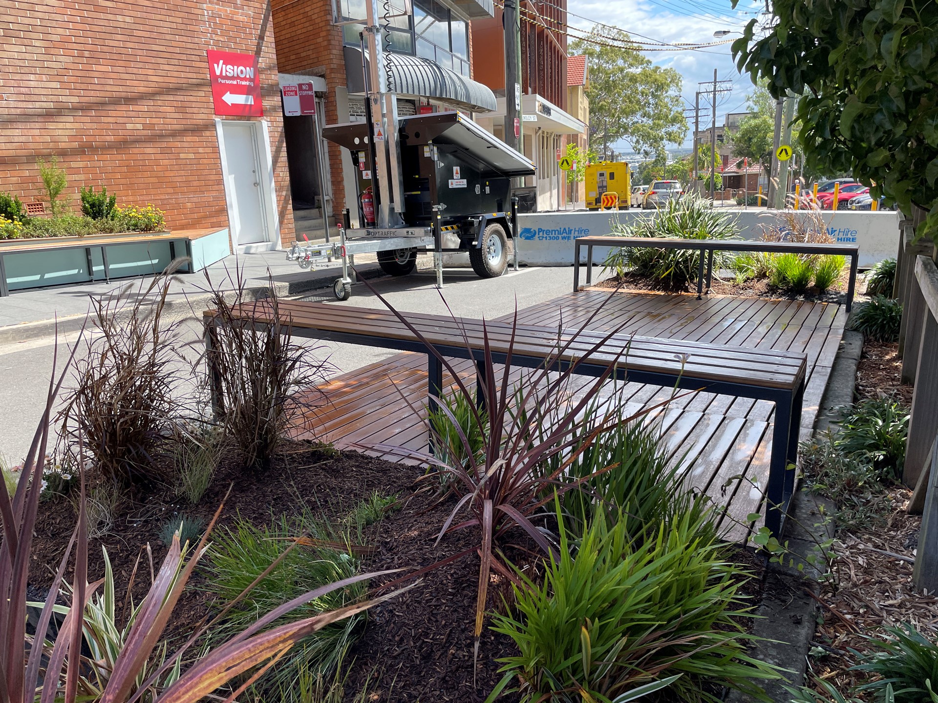 Canterbury Bankstown City Council is revitalising Anzac Mall in Campsie. We designed and built over 2 rear to kerb parking spaces a parklet comprised of seating, raised decking, large planters and ramps.