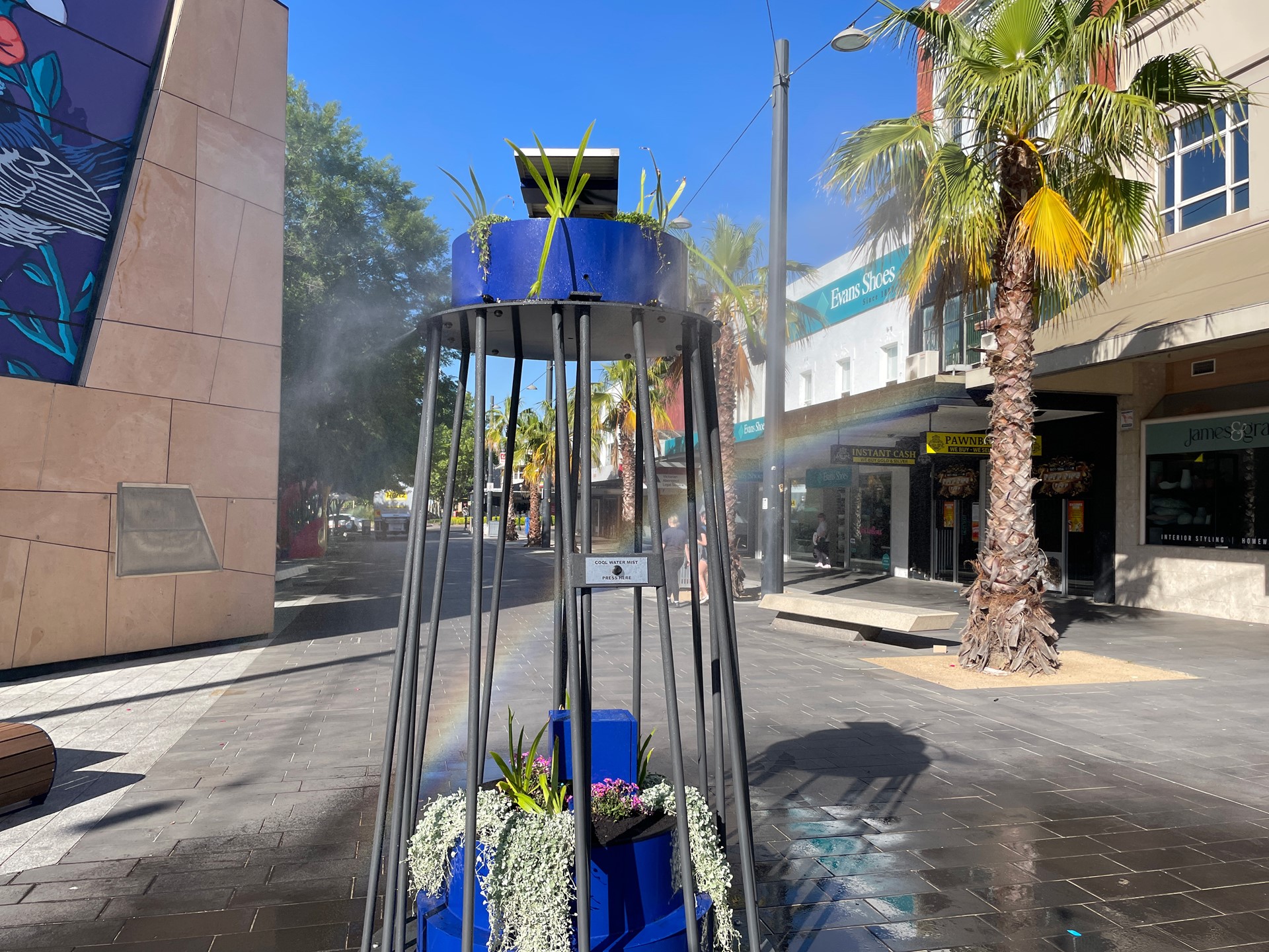 Urban heat remains one of the biggest challenges in public spaces. While plants play a critical role in cooling, water is also highly effective. After finding limited options for freestanding misting units, we designed and built our own. The result: a solar-powered misting tower that’s fully self-contained, easily relocatable, and integrates greenery. Bendigo City Council installed the first unit—helping cool the community through the peak of summer.