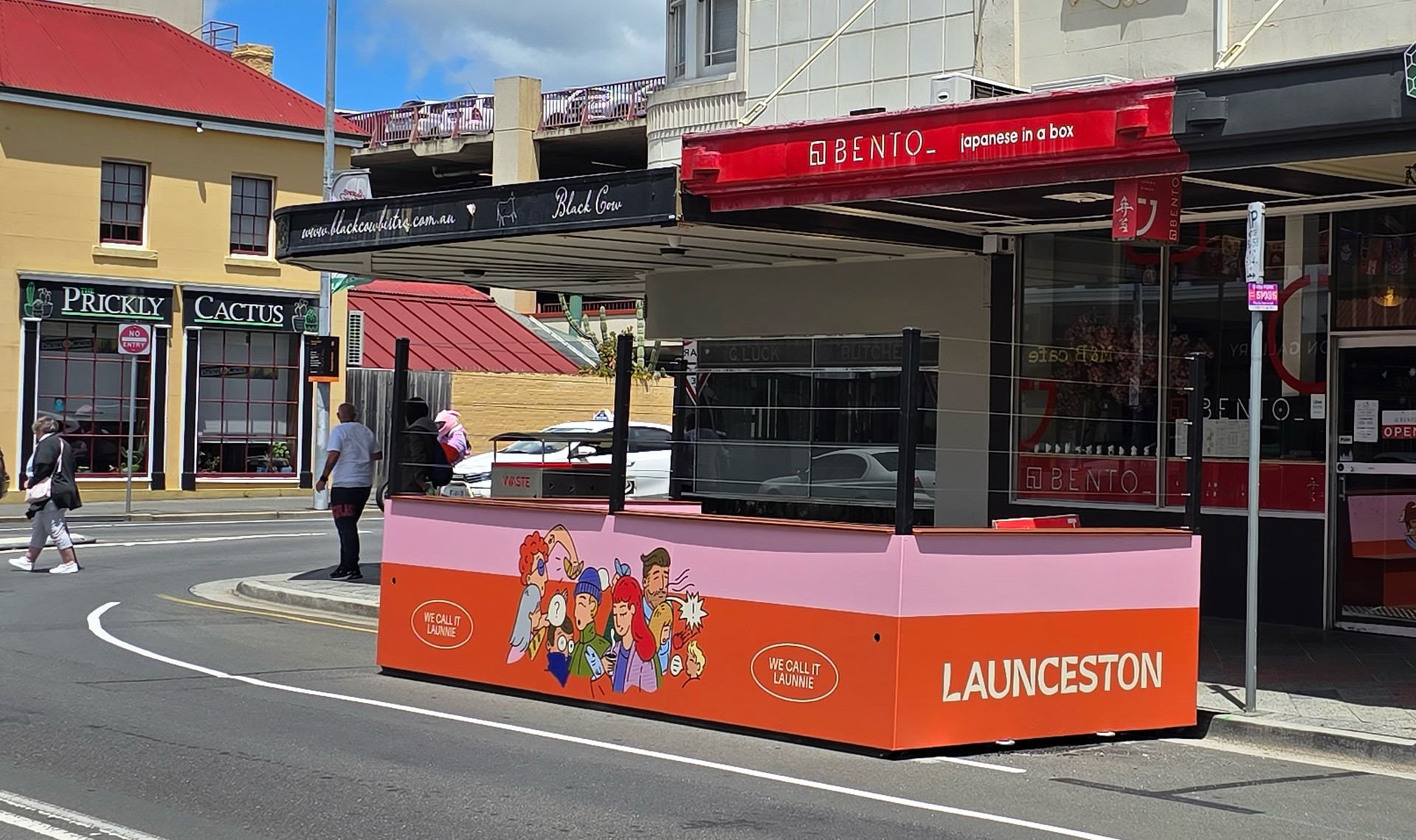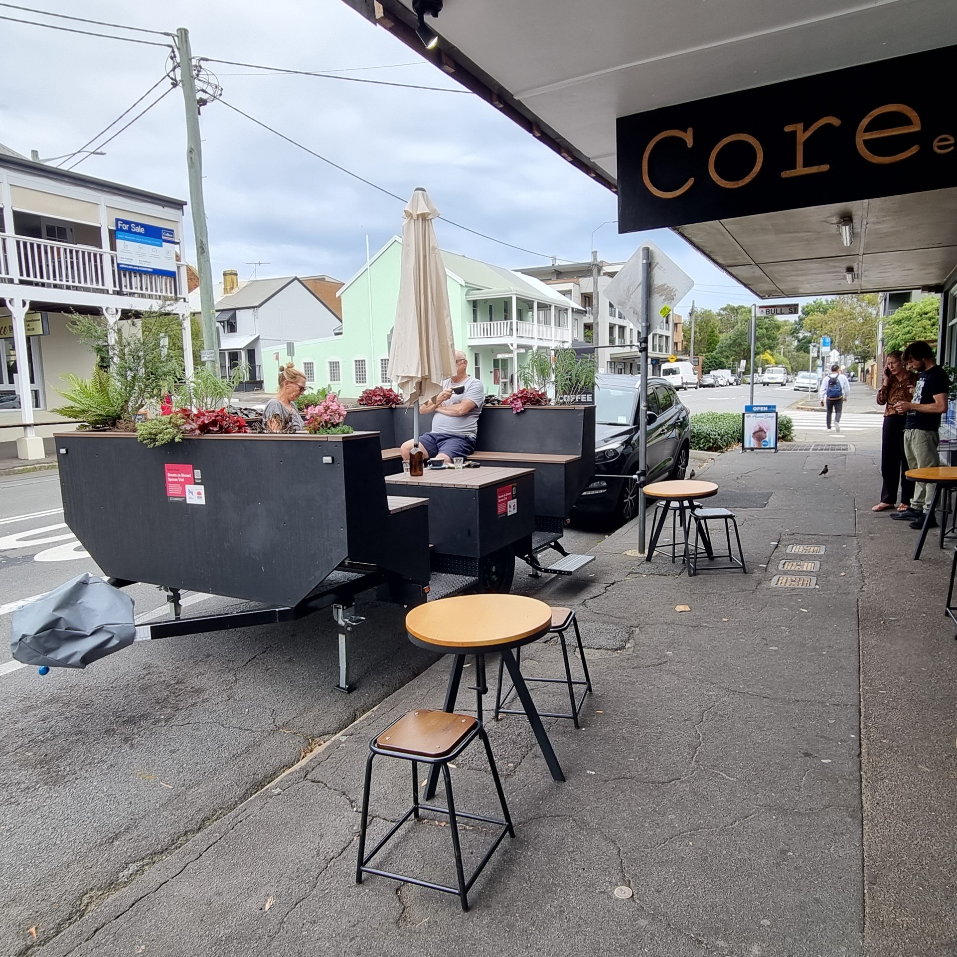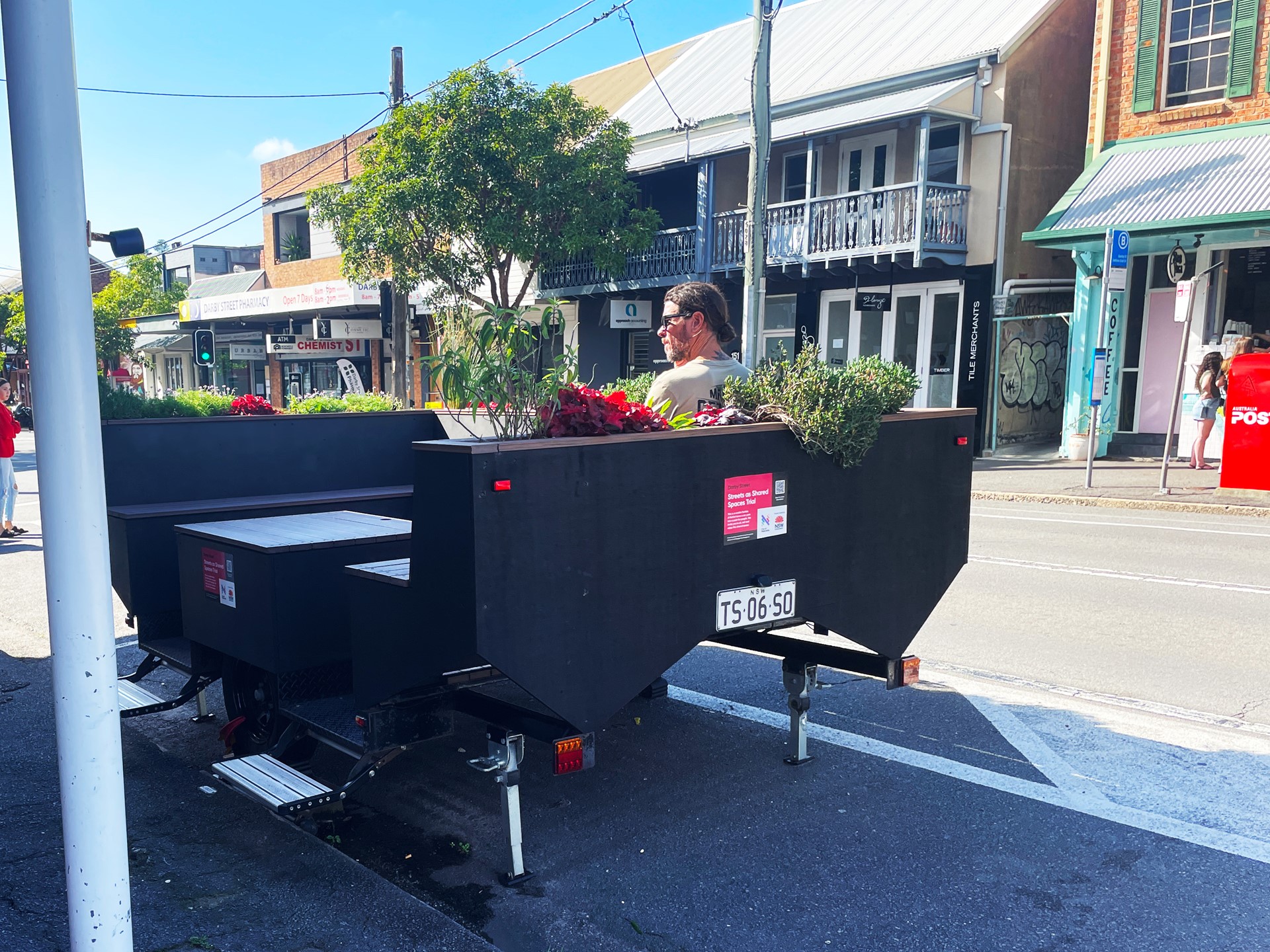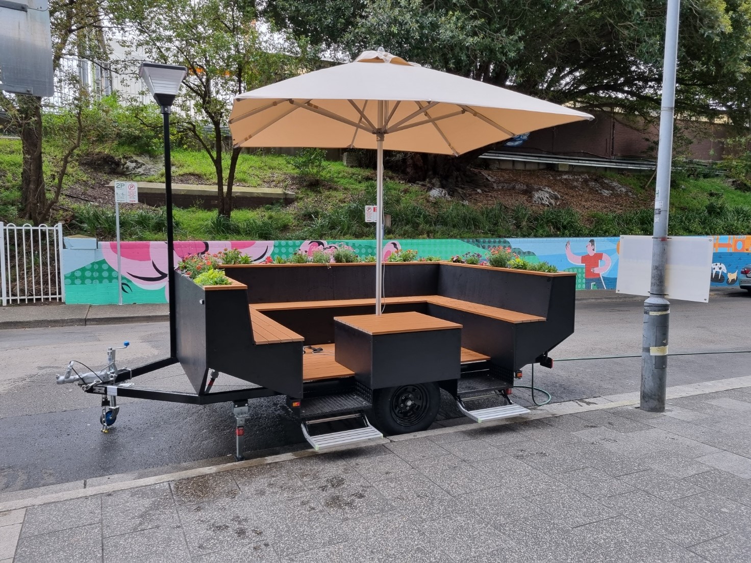 Newcastle City council purchased a mobile parklet that is to be moved around the city. Cafe's and restaurants can apply to council for the parklet through a booking system ensuring that any cafe within the LGA has the chance to expand there dining footprint.