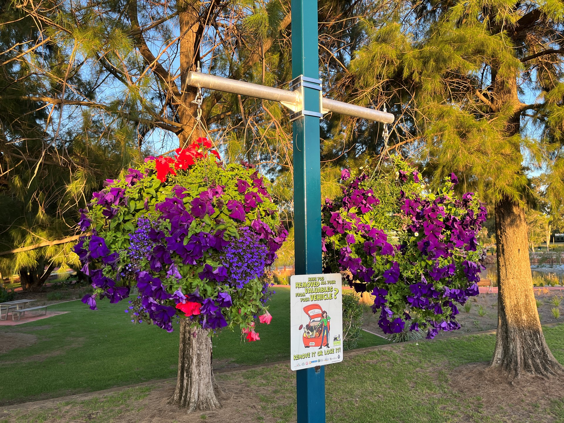 A total of 100 hanging baskets were installed across 50 light poles, creating a vibrant and welcoming streetscape around the precinct. The program forms part of Belmont’s broader commitment to improving public amenity and activating key civic spaces through high-quality urban greening.