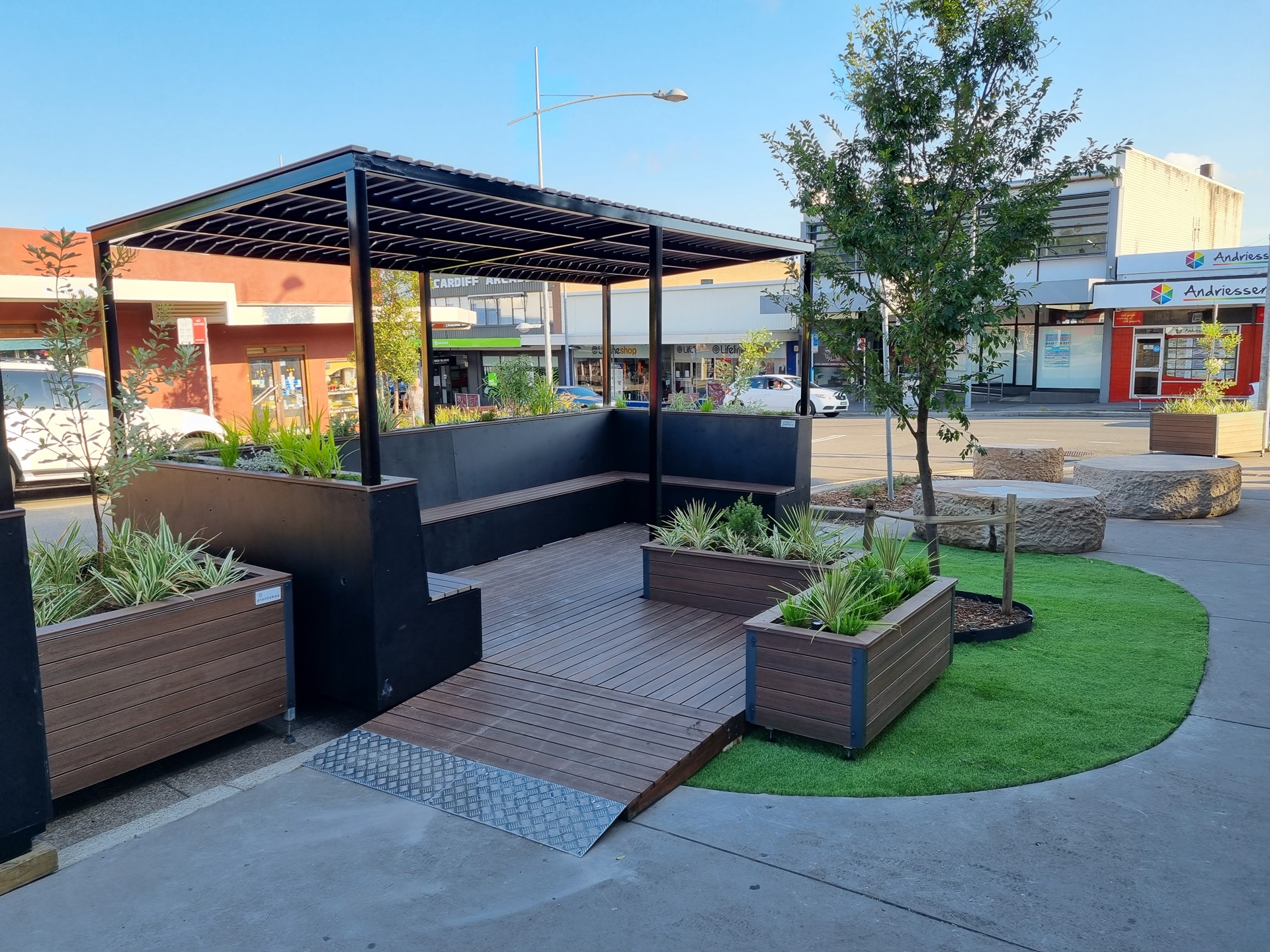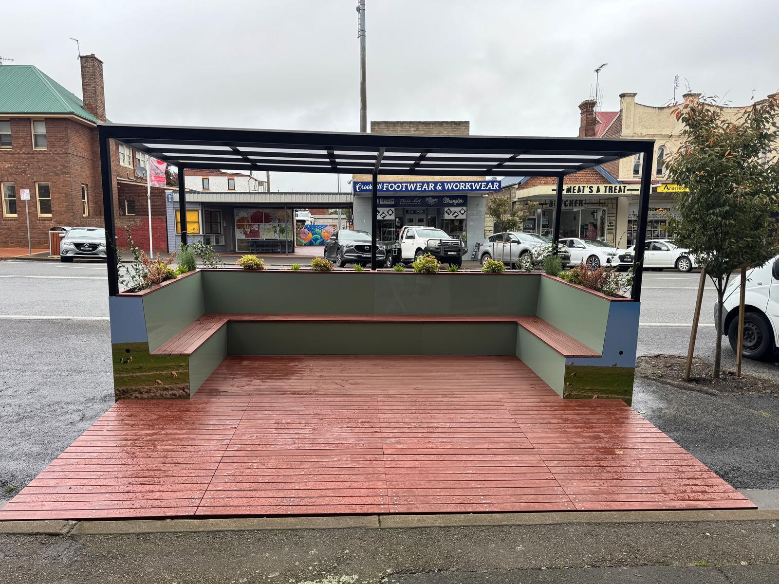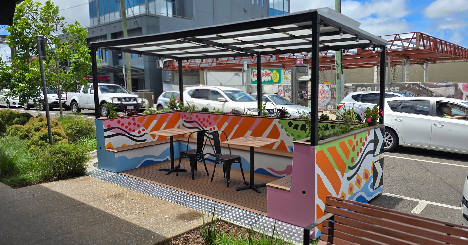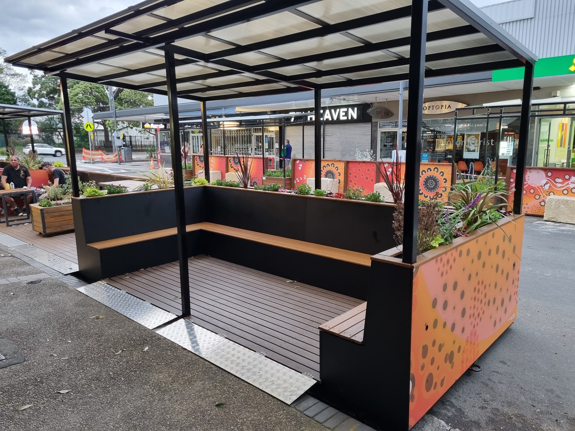 Our premium Pergola Parklet makes a large stylish covered parklet out of one parking bay. It provides space for the community, increases dwell time and in-turn local café or restaurant revenue. Used for permanent or temporary installations.