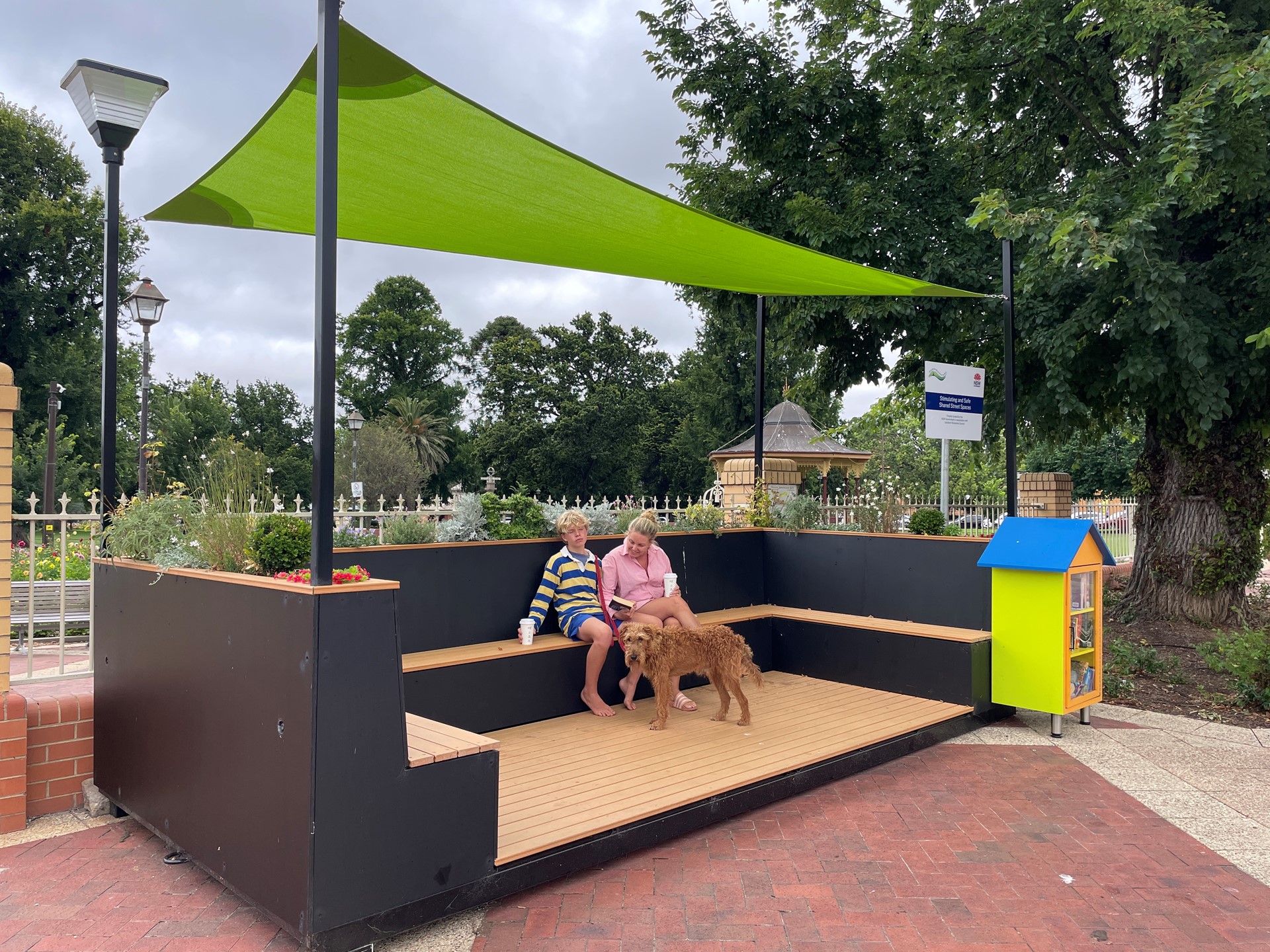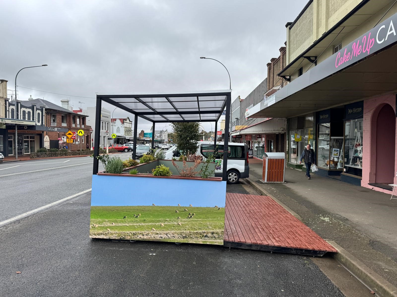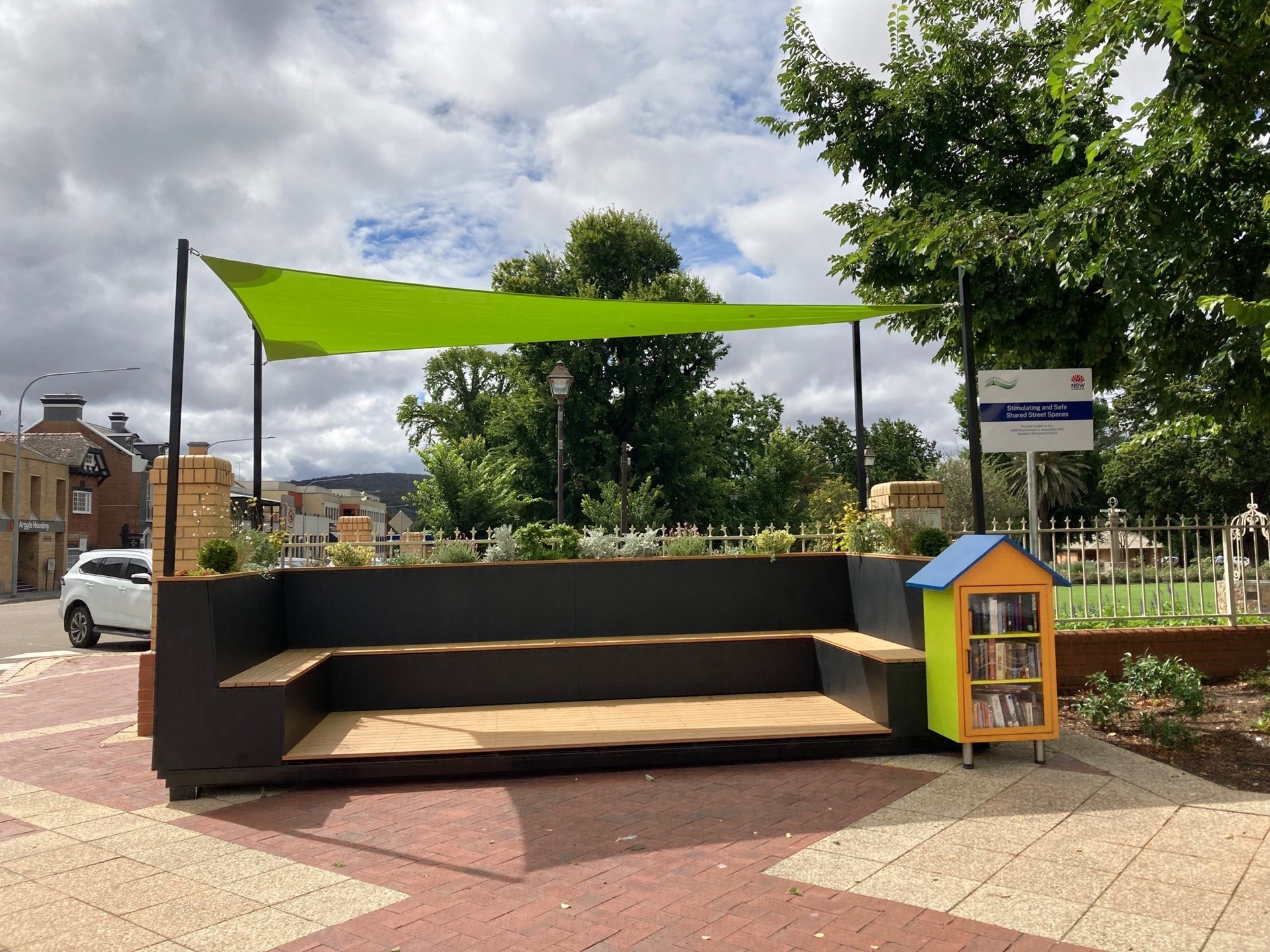 Our road registered, tried and tested mobile parklet transforms a parking space in an instant. Tow it, park it, level it, put up the umbrella and presto; a parklet for your community to enjoy. A versatile placemaking product to instantly activate an outdoor space.