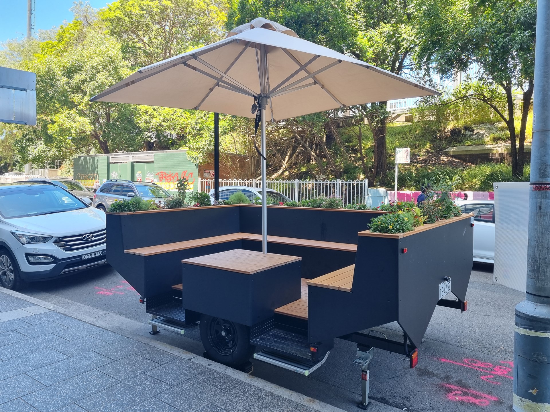 Our range of transportable parklets are easily moved via tilt tray or towed. Originally known as People Parkers these were the first parklets that appeared on the streets of Sydney in 2015. We continue to upgrade and improve on their designs to offer greater flexibility and usability.