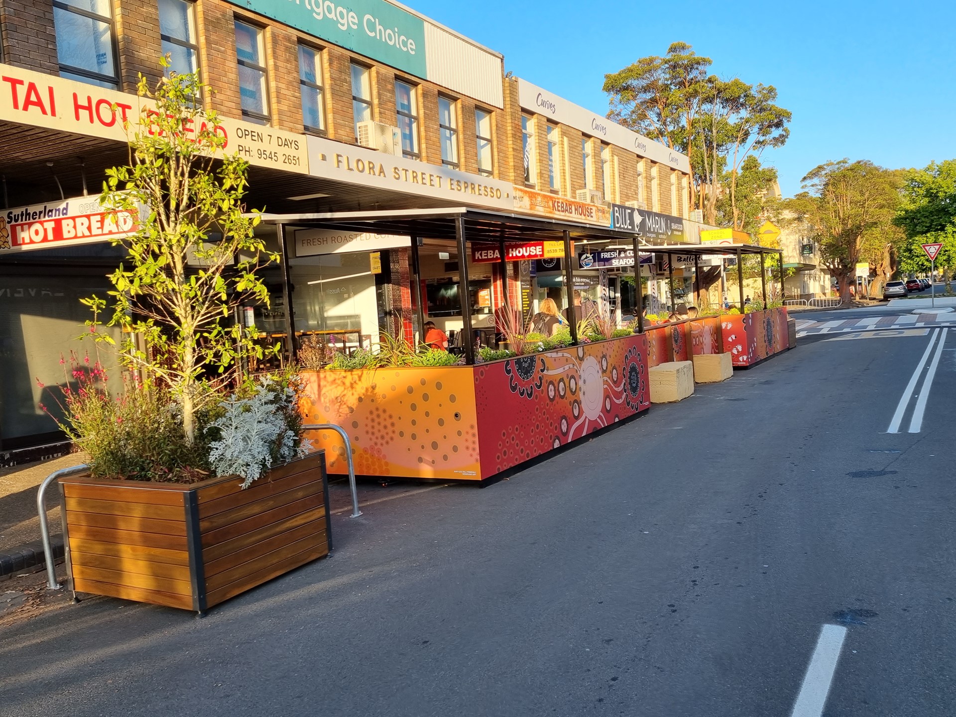 Timber clad Tree Planter on road