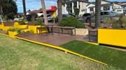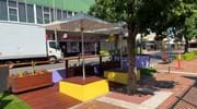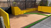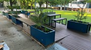 When an urban environment needs a modular parklet, softening or street widening our Decking Modules enable a floating deck to be erected quickly. Our decking has been designed to enable free flow of storm water with no backing up or restriction to flow, with hidden access for cleaning of gutters. A top lip enables decking to be placed hard to guttering to limit trip hazard. Levelling feet ensure that the entire surface can be levelled. Option of FSC certified Australian hardwood or composite timber.