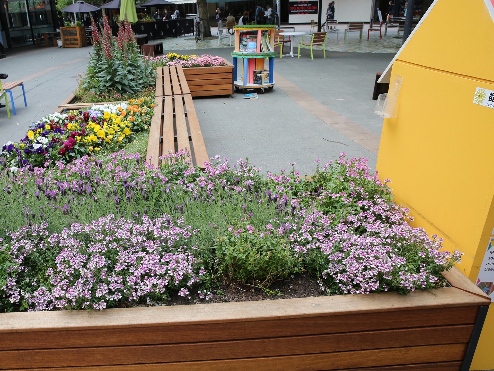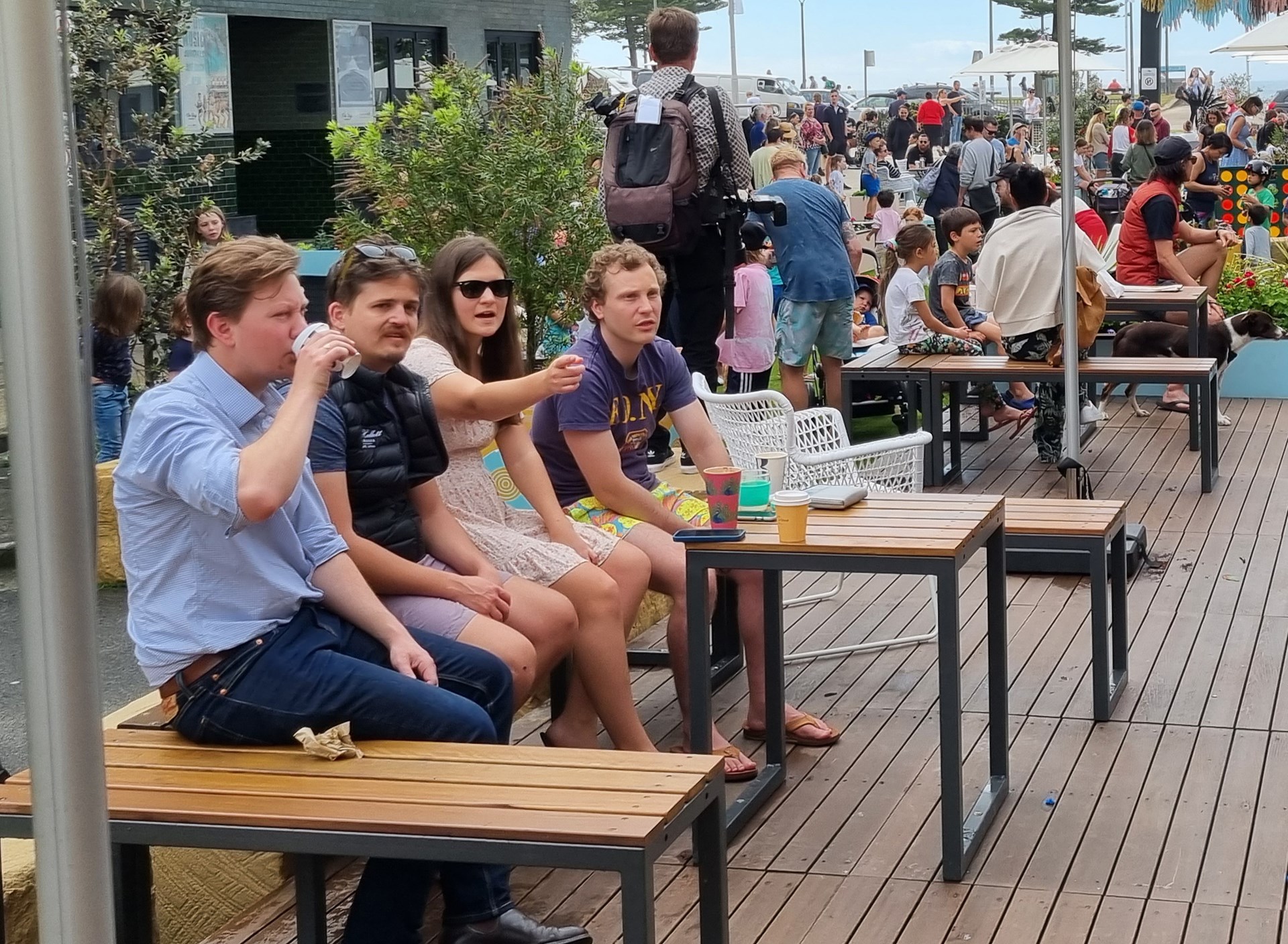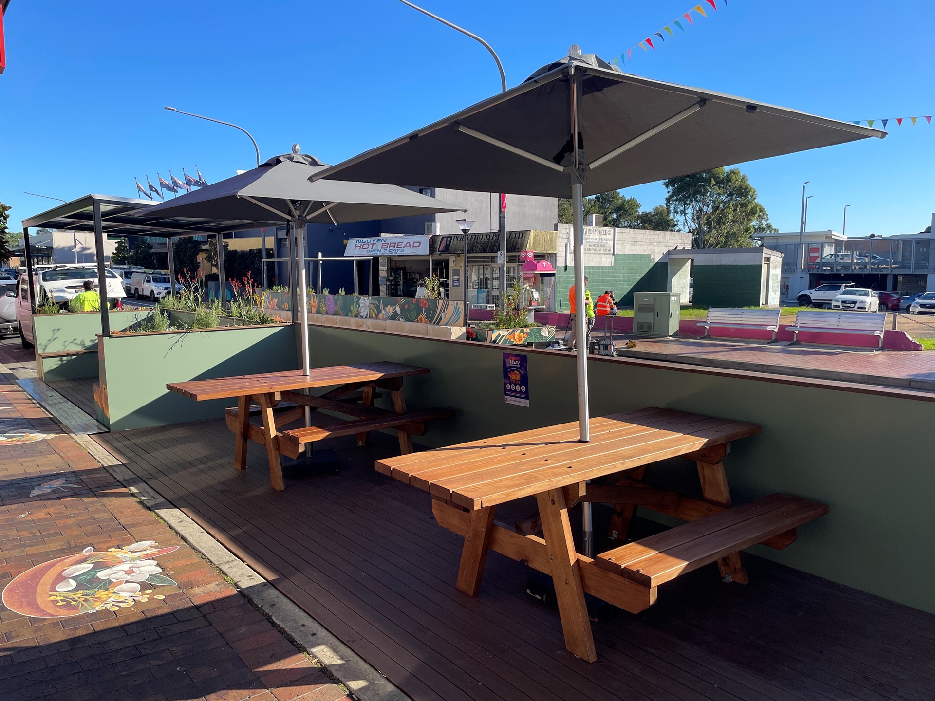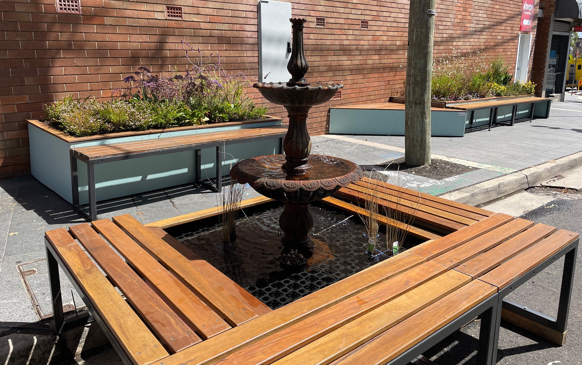 Our seating and tables are free standing. Made for commercial applications they are sturdy, well designed and durable. Australian Hardwood timber or modwood surfaces with powder coated steel frames. The benches and tables also have fixing points to other bench units and to the ground to prevent theft.